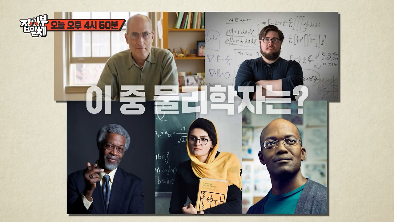 얼마 전 SBS 집사부일체에서 정재승 교수님이 퀴즈를 하나 냈어요. 이 사진들 속에 누가 물리학자일까라는 질문이었습니다. 여러 답변과 그 답변을 도출해 낸 재밌는 이유가 오갔는데요. 이혜성 아나운서는 여성을 골랐어요. 그 이유가 물리학, 과학자라면 언 듯 중년 백인 남성을 떠올릴 수 있는데, 출제자의 의도를 생각해 보면 유일한 여성이 답이 아닐까라는 논리였습니다. 여러분은 누구를 고르셨나요?