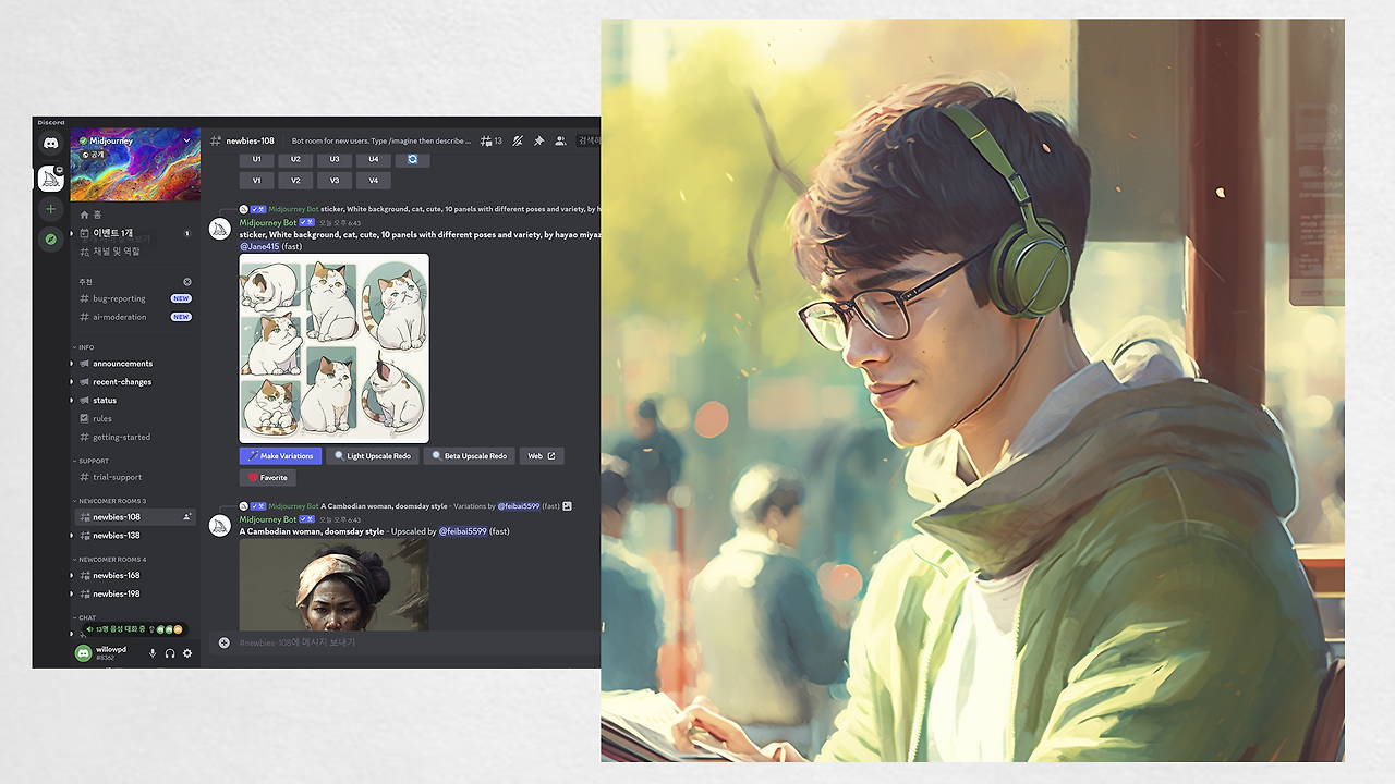 금방 얻어진 것이 아니라, 이 정도에 이르기까지 몇 차례 수정을 거듭해야 했습니다. 처음 중년 남성이라 입력했을 때, 미드저니는 '백인남성'을 그려냈습니다. 즉 딥러닝이든 확률이든 결국 알고리즘도 편견을 가진다는 것은 인공지능의 원천적 데이터 소스를 제공하고 있는 우리 인간사회가 편견과 혐오가 산재해 있다는 말입니다. 챗기반이든 이미지 기반이든 앞으로 우리 사회가 인공지능이 생산한 결과물을 더 많이 사용하게 된다면, 이 점은 깊이 고려해 보야할 문제가 아닐까요?