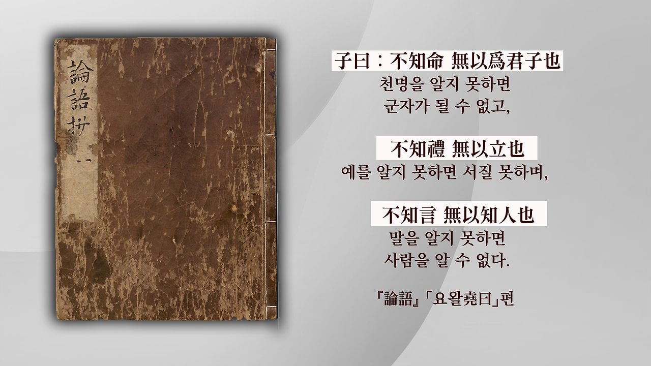 “명을 알지 못하면 군자가 될 수 없고, 예를 모르면 설 수 없고, 말을 모르면 사람을 알 수 없다.”라는 구절입니다.