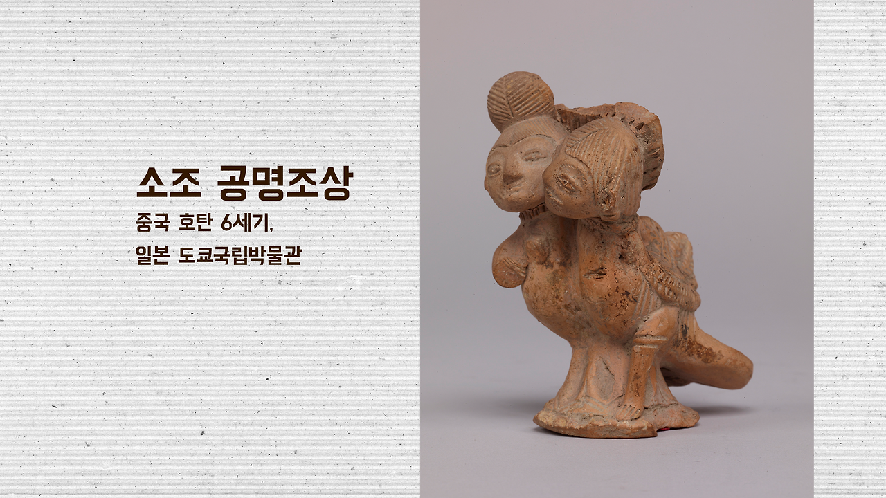 김용덕 작가 : '인면조人面鳥'라는 환상동물이 있습니다. 인면조가 여러 가지가 있죠. 유교 문화에는요, 파랑새(청조靑鳥)가 있고요. 그리고 불교문화에 가릉빈가와 공명조라는 인면조가 있습니다. 근데 '가릉빈가迦陵頻伽'는 머리가 하나, '공명조共命鳥'는 머리가 두 개입니다. 경전을 보면요, 욕심을 낸 사람은 '기바기바가(耆婆耆婆迦)'가 된다고 되어 있거든요. '기바기바가'가 공명조의 원어예요. 이게 '지지배배', '짹짹'하는 새소리를 뜻해요. 거기에서 유래된 이름인데, 공명조가 머리가 두 개면, 인격도 두 개일 겁니다. 인격이 두 개니까, 이름도 두 개겠죠. 하나는 가루다(迦嘍茶, Garuḍa) 또 하나는 우파가루다(憂波迦嘍茶, Upagaruḍa) 히말라야(설산) 어떤 공명조가 살았는데, 어느 날 한 친구가 잠이 들고 한 친구는 깨 있었죠. 근데 이제 깨어있는 친구가 뭘 발견했냐면 아주 맛있고 건강이 좋은 열매 혹은 꽃잎이라고도 하고요. 그 열매를 보고 갈등을 합니다. 깨울까 말까, 깨울까 말까? 자기가 생각하기를 어차피 우리는 한 몸이니까, 내가 먹어서 배부르면 얘도 배가 부를 거야라고 해서 깨우지 않고 먹죠. 이제 잠에서 깬 친구가 일어났는데, 뭔가 기분이 이상한 거예요. 왜 배부르지? (나는 먹은 기억이 없는데) 그래도 물어보죠. 혹시 뭐 먹었니? 먹었대요. 여기서 얘가 삐진 거예요. 화가 났죠. 날 깨우지도 않았다고. 너 나중에 두고 보자. 이렇게 뒤끝이 있는 그 친구는 그렇게 며칠이 지나다가 정반대가 됩니다. 깨어있던 친구가 자고 서로 반대 상황이 되죠. 근데 그 친구도 열매를 발견합니다. 근데 그 열매는 독이든 열매였습니다. 설마 먹었을까요? 먹으니까 바로 즉각 효과가 나타나죠, 독이 들었으니까. 그 고통에 잠이 들었던 친구가 깹니다. 자기도 분명 아팠을 거예요. 왜 이걸 먹었냐니까, 일전에 나 안 깨우고 맛있는 거 혼자 먹었지 않았냐? 그 복수라고 결국 그렇게 죽어갔다는... 공명조설화 질투와 분열이 얼마나 무서운 결과를 초래하는지 알려주는!