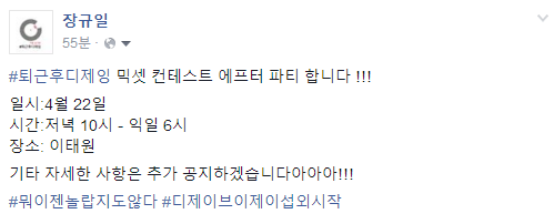 이제 퇴근 후 디제잉에서는 4월 말에 있을 믹셋 애프터 파티에 집중하도록 하겠습니다. 이번 행사에 참여 못하신 분들은 4월에 퇴근 후 디제잉 믹셋 애프터 파티에서 뵙겠습니다.