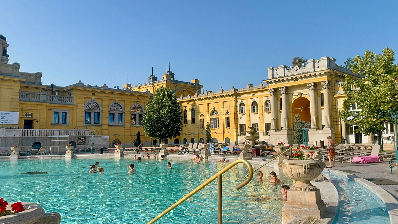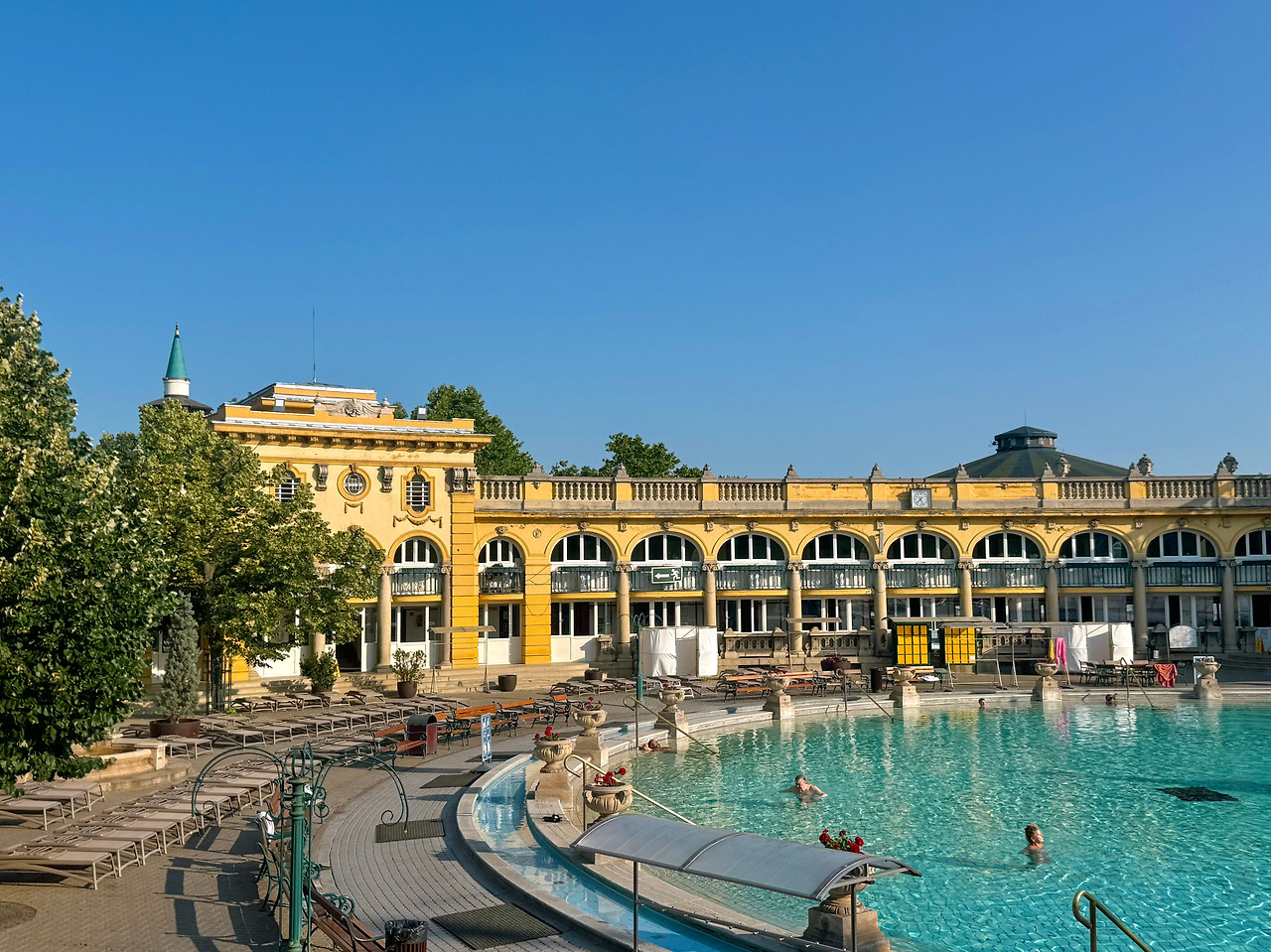 세체니 온천은 색이 먼저 기억에 남을 정도로 쨍한 색감이 강렬했다. 민트색 온천에 몸을 담그며, 고개를 들면 파란 하늘이 겹쳐 들어왔고, 사방이 노란 건물로 둘러싸여 있었다. 햇빛을 머금은 그 노랑은 유난히 눈부셨다.
