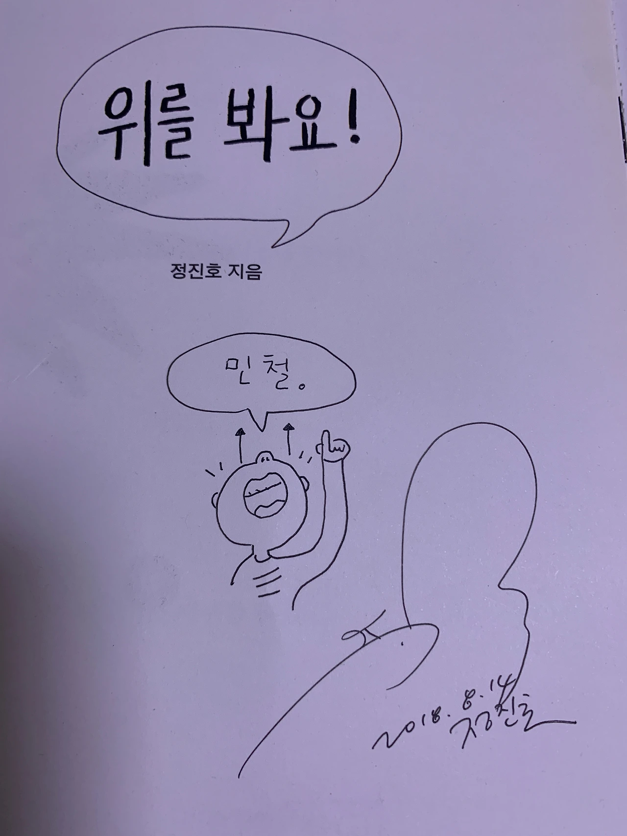 정진호 작가와의 추억도 있다. 동네 도서관에서 정진호 작가의 강좌를 들었는데 강의 시간에 책을 만드는 활동도 너무 재밌고, 같이 전시회를 다니는 것도 행복했다. 그분은 싸인도 유쾌하다. 소중한 추억을 준 정진호 작가에게 감사하며 그분의 책들을 소개한다. 모두 상을 받을만한 가치가 있는 책들이다.