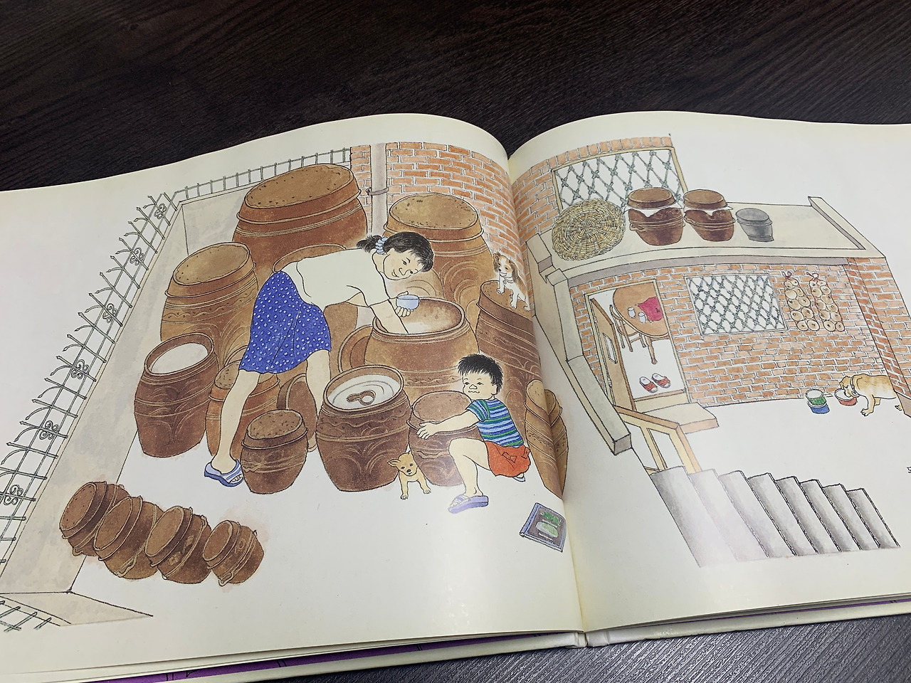 그림책 <만희네 집>을 보면 그 집이 생각난다. 나무와 풀이 그때 우리가 살던 집보다 많아서 느낌은 사뭇 다르지만 집의 구조나 생김은 상당히 비슷하다. 마당을 둘러싼 방들, 마루도 비슷하지만 옥상으로 가는 계단이 특히 비슷하다. 이 그림책을 보고 있으면 엄마가 옥상에 심었던 고추, 빨래, 장독대가 기억난다. 그리워할 만한 딱히 좋은 일도 없었던 거 같은데 그리워해야 할 것 같은 기분이다.