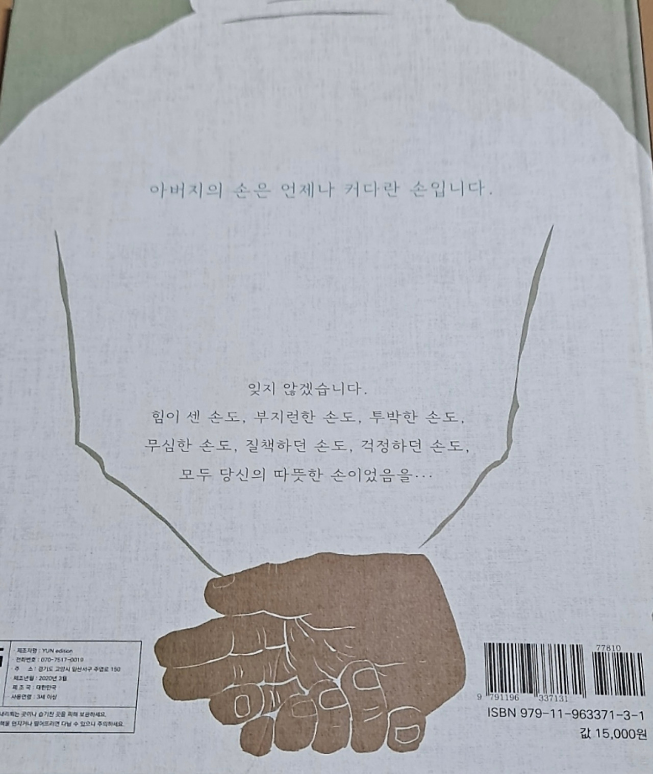 몇 년 전 큰 사고가 나서 아빠가 자동차를 폐차했다. 병원에 입원해서 누워있는 아빠의 손을 잡았다가 깜짝 놀랐다. 너무나 익숙한 손. 내 손이랑 똑같이 생겼었다. 내 손을 그대로 확대하면 아빠 손. 아빠 손을 그대로 축소하면 내 손이었다. 나는 우리 아빠랑 손이 똑같이 생겼다. 아빠는 그 커다랗고 익숙한 손으로 평생 막노동을 하셨다. 쉽지 않은 일이었을 텐데 그 무거운 책임을 평생 동안 고스란히 짊어지셨다.