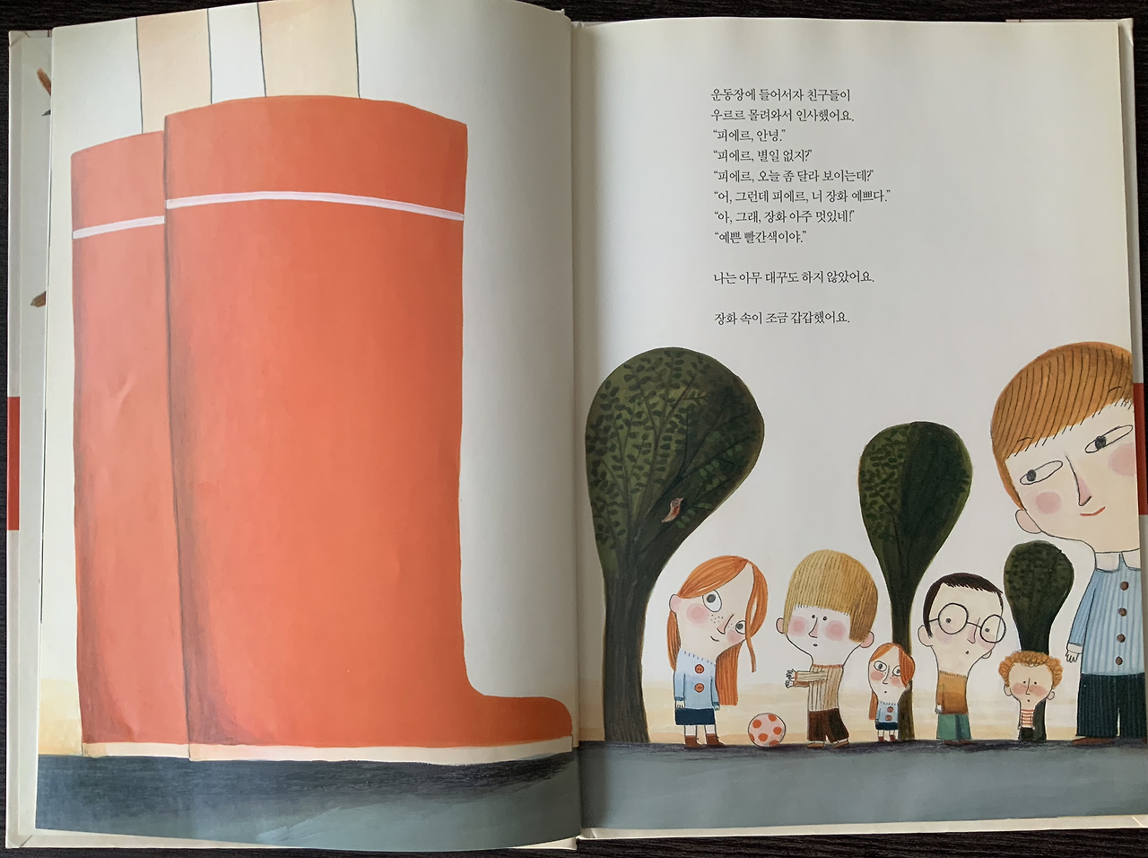 이 책은 차이를 이해하는 프랑스식 성숙한 배려에 관한 책이라고 한다. 처음 이 책을 봤을 땐 충격을 받았다. 마음이 불편하기도 했다. 수업시간에 이 책을 읽어주기 위해 꺼내면 아이들은 비명부터 지른다. 피에르가 어쩌다 알몸으로 학교에 갔는지, 피에르가 학교에서 무슨 일을 겪었는지 표지만 봐도 궁금하지 않은가? 알몸으로 학교에 온 피에르를 처음 본 피에르 친구들의 반응이 예사롭지 않다. 실제로 수업을 하면서 그 장면을 두고 열띤 토론이 벌어진다.