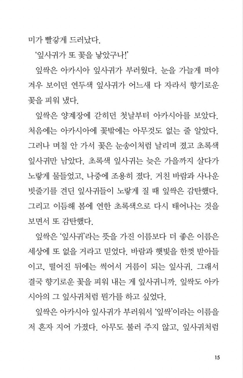 잎사귀는 꽃의 어머니야. 숨 쉬고, 비바람을 견디고, 햇빛을 간직했다가 눈부시게 하얀 꽃을 키워내지.