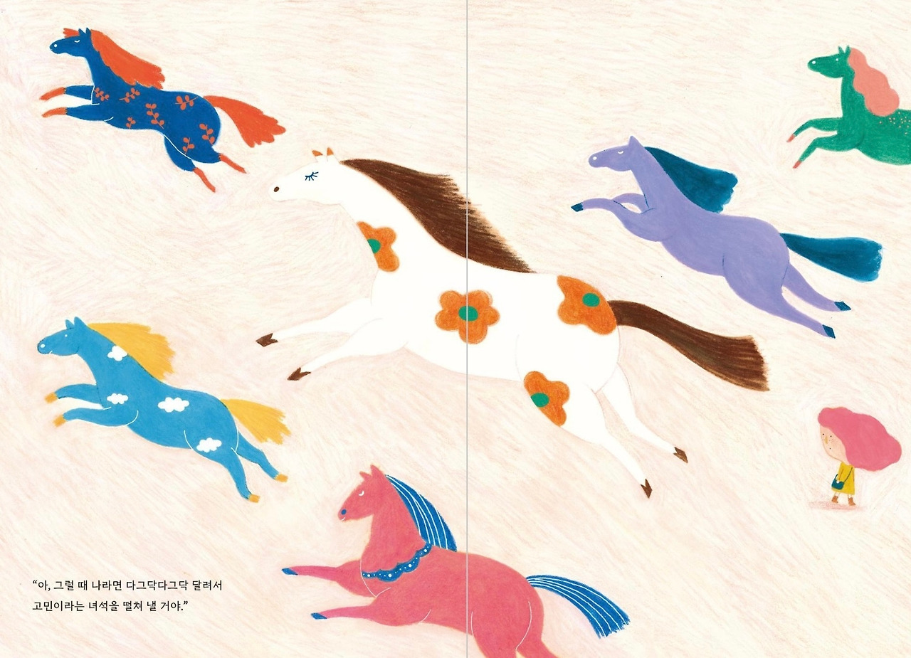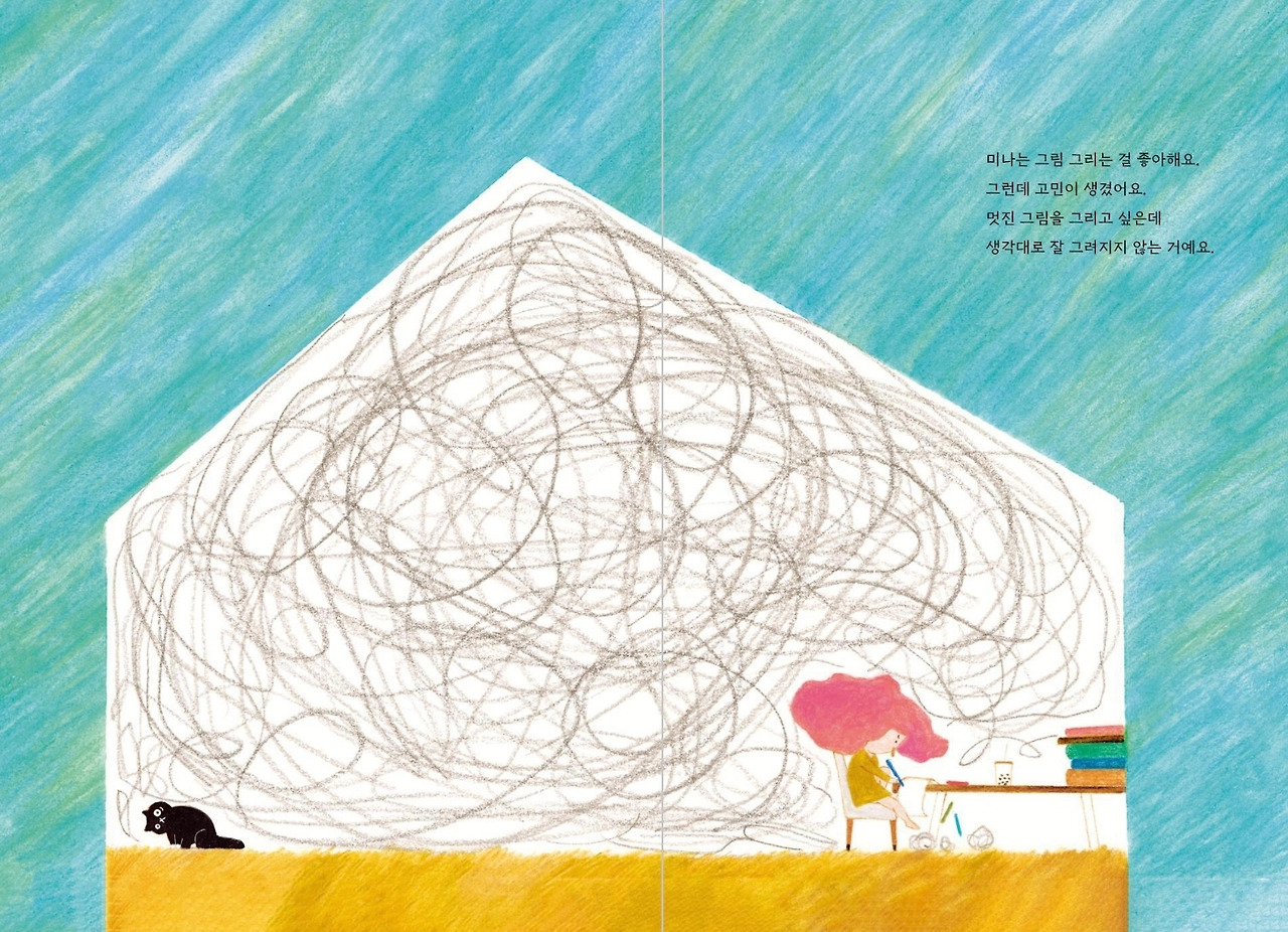 이 그림책은 출간한 지 얼마 안 되었다. 올해 나온 신작이다. 나는 그림이 너무 예뻐 보여 끌렸다. 나의 수만 가지 고민 중 한 가지는 그림을 못 그려도 너무 못 그린다는 거다. 나의 고민과 비슷한 고민을 가진 미나에게 동질감도 느껴진다. 작가도 그림을 못 그려 고민이었을까? 하지만 천유링 작가의 그림은 액자에 걸어두고 싶을 만큼 너무너무 이쁘다. 아이옷 디자인으로 해도 너무 이쁠 것 같다. 작가는 이제 그림을 못 그린다는 고민을 하지 않을 것 같다.