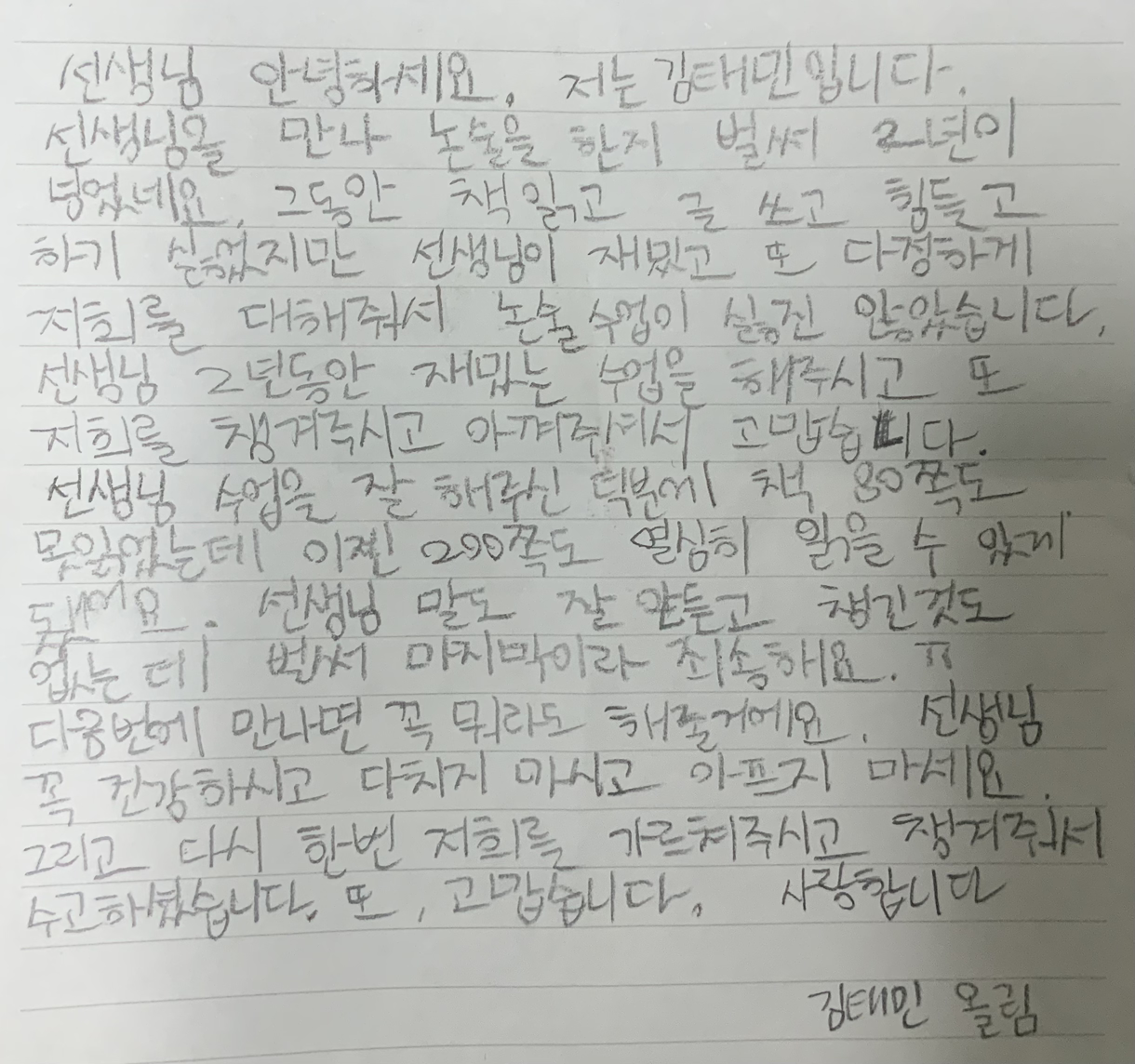 오늘 오랫동안 가르치던 아이들과 헤어지게 되었답니다.