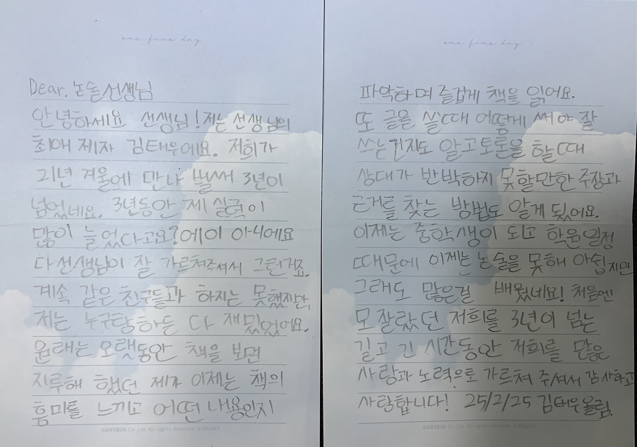 그 소리의 정체는 논술 선생님이 아이들과 헤어지는 게 슬프고
