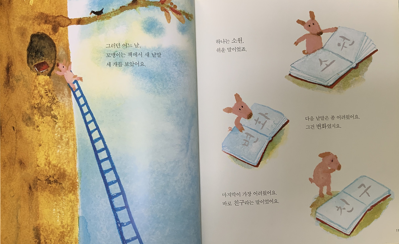 엄마가 오늘은 이 책을 보자며 펼치니 네가 몸을 비틀며 작은 소리로 말하더구나.