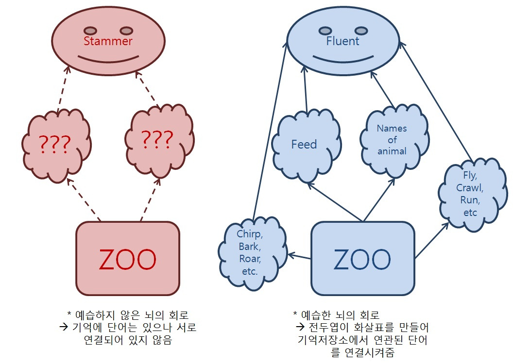 어떤 주제에 대해 원어민과 대화하기 전 그 주제를 미리 찾아보지 않으면, 단어가 즉각 생각이 안 난다. 즉 기억이 저장된 해마에서, 적절한 상황에서 필요한 단어를 끄집어내어 주는 전두엽의 기능이 부족하기에 이를 훈련시키는 것이다. 예를 들어 동물원 하면, 동물들에 관련된 단어들이 많다. 동물 이름, 동물들이 내는 소리들, 동물들의 먹이들, 동물들의 천적, 행동습관 등등. 이에 대해 미리 한번 보고 나가면, 훨씬 더 그들과 말하기 쉬워지고, 이를 통해 확실한 즉각적인 '단어 끄집어내기' 훈련(전두엽 훈련)이 된다. 그리고 우리는 그에 적절한 신경회로가 생기게 된다.