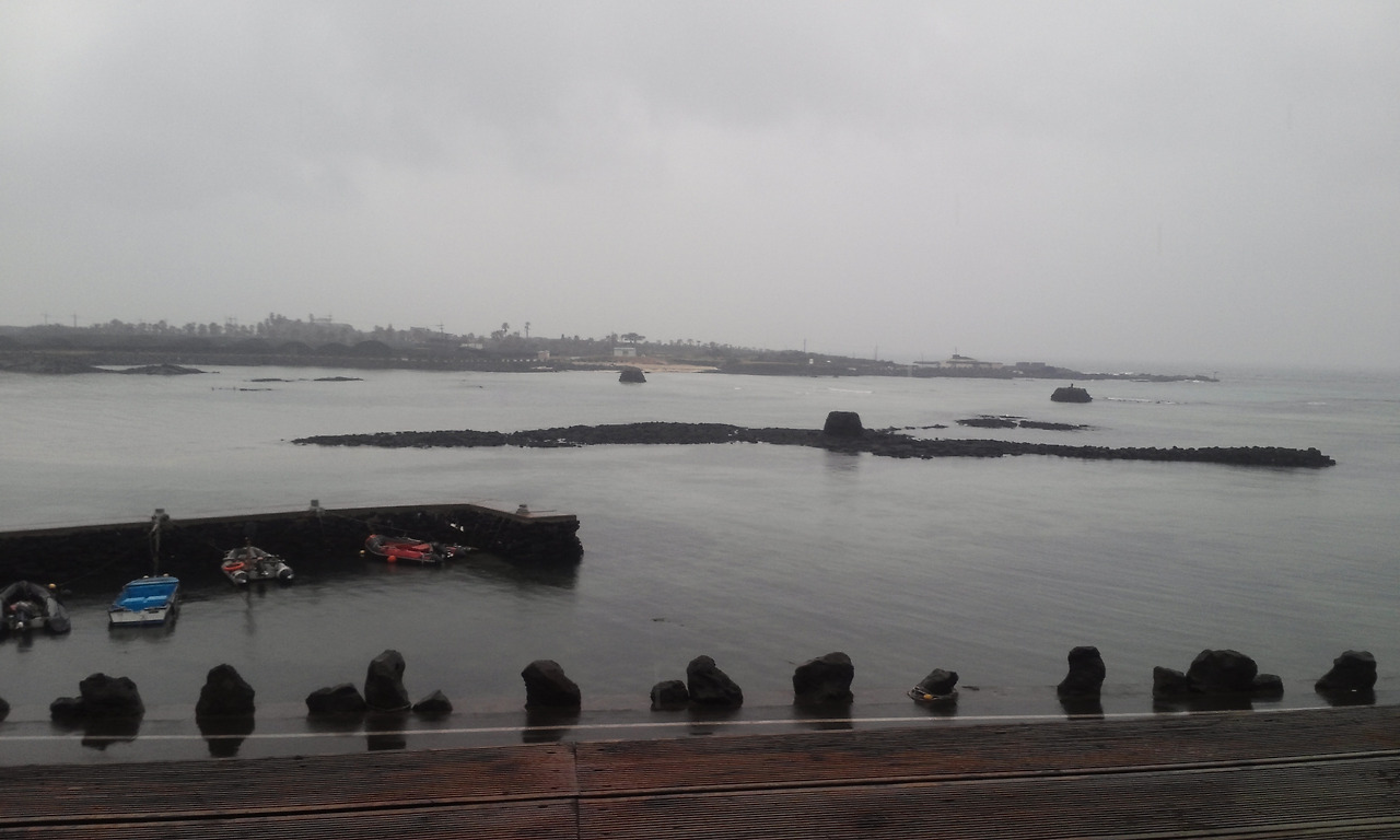 시끌벅적한 소리에서 잠들어 고요함에 눈을 떴다. 앞바다의 파도는 부드러웠고 비는 가볍게 내렸다.