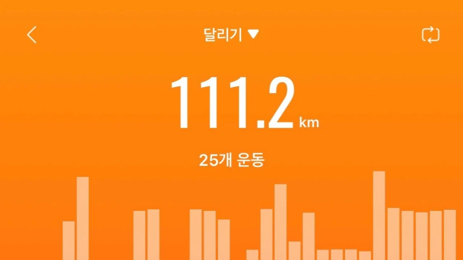 한 달을 이렇게 보냈어요. 비가 오는 날, 황사와 미세먼지가 심한 날을 제외하고 밖으로 나가서 뛰었어요. 이렇게 하루 5.5킬로 정도를 뛰니 한 달 동안 111킬로를 뛰었고, 20일 정도를 했더라고요.