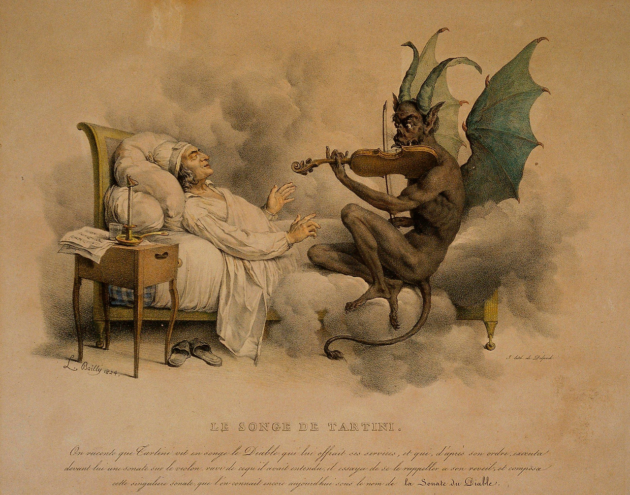 타르티니는 바이올린 소나타나 협주곡을 쓸 때 아르칸젤로 코렐리의 작품을 모델로 삼았었다고 합니다. 연주의 기교적인 측면은 물론이고, 악장 구성 및 음악적 전개에 있어서도 참고를 했다고 하는데요. 끝내는 자신만의 고유한 음악 세계를 구축해냈습니다. 그 대표적인 작품이 바로 타르티니가 자신의 작품 중 최고로 꼽았다는 바이올린 소나타 g단조인데요. 이 작품에는 악마의 트릴' (Il trillo del diavolo), 혹은 '악마의 소나타’라는 부제가 있습니다. 타르티니가 악마와 계약을 하는 꿈을 꾸고 이 소나타를 썼기 때문입니다. 소나타 마지막 악장에서 구사되는 트릴 테크닉이 기교적으로 매우 난해하기로 유명한 곡이죠.
