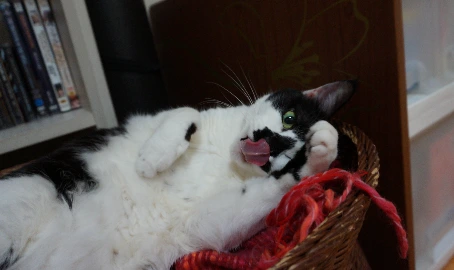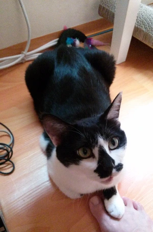 아기 때부터 가지고 놀던, 장식용 조화 꽃바구니에 있던 직경 2센티 정도의 작은 꽃송이들은 애기가 가장 좋아한 장난감이다. 꽃송이를 애기의 키보다 조금 높게 던져주면 애기는 두 앞발을 손처럼 사용해 손뼉 치듯이 맞대어 꽃송이를 탁 잡아냈다. 명중률 백 프로, 백발백중의 캐치볼. 똘망똘망한 눈동자와 집중한 주둥이, 의기양양한 표정. (가장 좋은 조합은 빳빳한 비닐봉지 안에 꽃송이 넣어주기)
