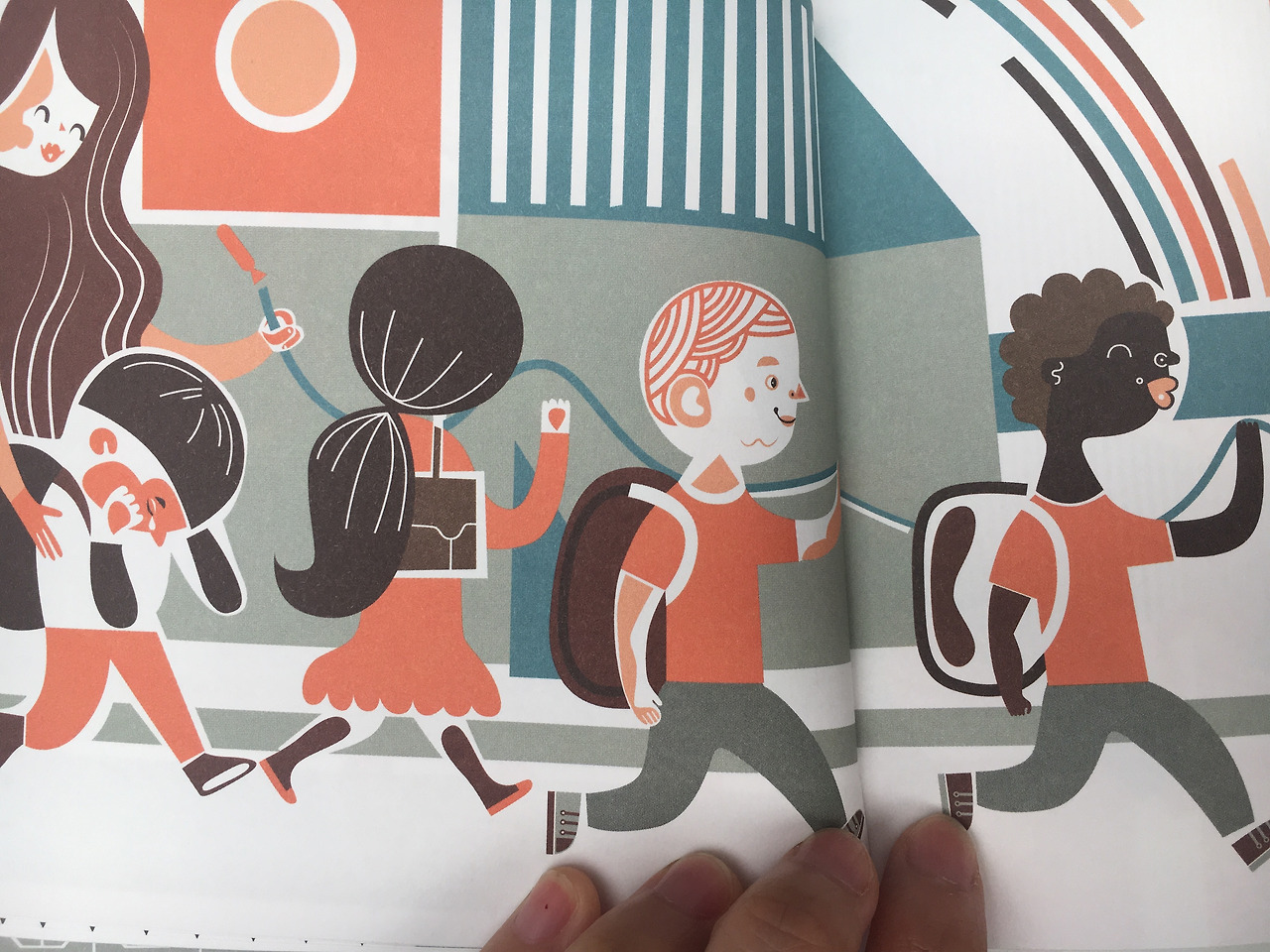 여기에 조금 시선을 튼 그림책이 있어 눈길이 갔다. <SPACER>는 노화에 걷는 행위를 결합시켰다. 우리는 매일 걷는다. 회사를 가든 학교엘 가든 친구를 만나러 가든, 우리 인생은 걷는 것에서 자유로울 수 없다. 이 그림책은 그러한 일련의 걷는 행위를 하는 중에 주인공이 태어나고 성장하고 늙는 모습을 보여준다. 그러는 동안 주인공 외 주변 인물들도 계속 태어나고 사라지며 누군가는 연애를 하고 누군가는 다치고 누군가는 헤어진다.