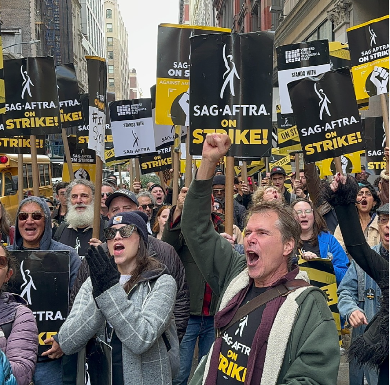파업하는 사람들, 출처: SAG-AFTRA, 미디어 오늘23년 말의 헐리우드 작가조합 파업은 OTT 등 새로운 산업계의 질서에서 배제되고 있는 창작자들의 권리를 찾기 위한 것이었습니다. 이중 언론에서는 OTT 플랫폼에 콘텐츠를 제공하는 제작사들의 AI기술을 이용하는 점에 제기한 문제점에 대해 초점을 맞췄죠. 그리고 복제에 대한 공정한 보상 등에 대하여 합의를 한 것으로 일단락 된 것으로 보입니다. 실제 협상과 결과를 이끌어내야 하는 '작가조합'으로서는 최선의 결과일지 모릅니다. 하지만 우리는 좀더 근본적인 문제 제기로 이 기술을 잠시 멈춰야 하지 않을까 생각해봅니다.
