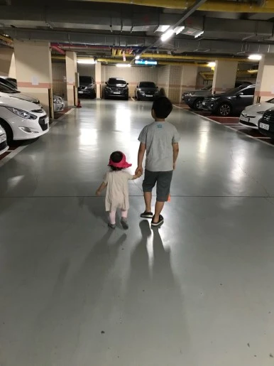 튼튼이가 18개월 무렵, 집 앞 주차장에서 오빠 손을 잡고 걷는 모습을 우연히 찍었다. 이제 2학년이 되었다고 주머니에 손 넣고 걷는 나무의 모습도 귀여웠고, 조금 늦게 걷기 시작한 튼튼이가 아장아장 힘있게 걷는 모습도 참 사랑스러웠다.