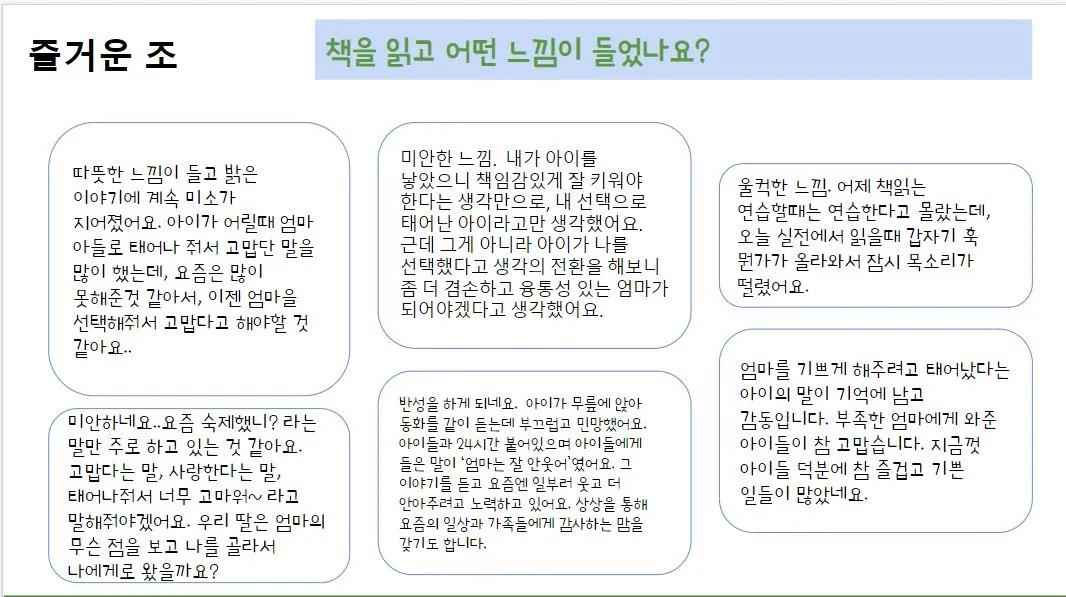 “예쁜 우리 아이들, 오늘 어땠니?”