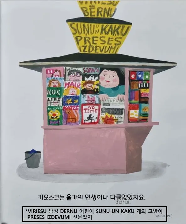 아네테 멜레세의 그림책 <키오스크>에 나오는 올가는 참 신기한 여인이다. 그녀는 절대로 키오스크에서 한 발짝도 나오지 않고 오직 그 공간의 작은 창문으로만 세상과 소통한다. 이 책에 나오는 ‘키오스크’는 주문을 자동으로 편리하게 하는 무인 단말기가 아니라 ‘신문, 음료 등을 파는 매점’이다. 주인공 올가는 이 작은 매점에서 먹고 자며 평생을 살아왔다. 그녀가 느끼는 행복과 즐거움, 그리고 괴로움 등 모든 감정은 몸 하나 움직이지 못하는 이곳에서 느끼는 것이 전부다. 한 평 남짓한 좁고 작은 이 공간은 올가의 하나뿐인 일터이자 인생이나 다름없다. 올가는 오직 거리 한 편에 자리 잡은 키오스크의 작은 창문 속에서 사람들과 대화하며 세상을 배웠다. 그런 세상이 갑자기 뒤집혔다.