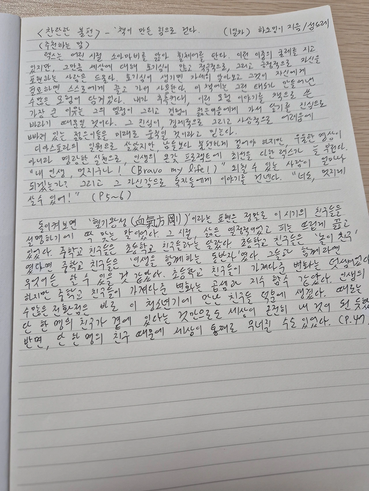 ‘책이 만든 힘으로 걷다’라는 부제가 붙은 <찬란한 불편>은 저자가 소아마비의 장애와 화교라는 이중의 굴레를 극복하며 타이완 출판계에서 성공하기까지의 과정을 담은 에세이집이다. 과학잡지 <에피> 발행인 주일우는 추천사에서 이 책 속에 표현된 저자의 ‘호기심 많고 긍정적인 태도’가 ‘경제적으로 그리고 사상적으로 어려움에 빠져 있는 젊은이들’에게 큰 힘이 되리라 장담하고 있다. <찬란한 불편>을 다 읽고 필사한 이후에도 꼭 추천인의 이런 호언장담이 내 마음속에 콕 박혔으면 하는 바람이다.