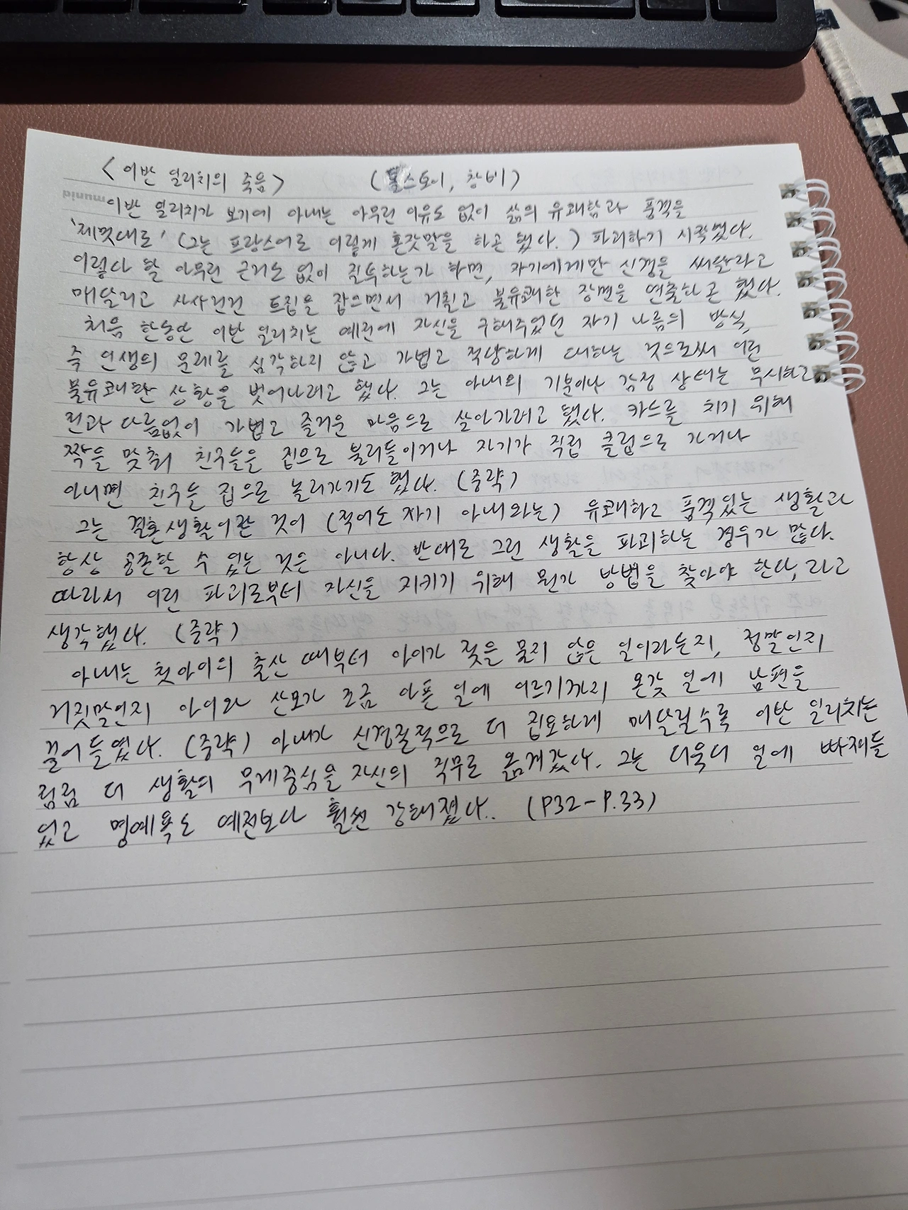 아내가 신경질적으로 더 집요하게 매달릴수록 이반 일리치는 점점 더 생활의 무게중심을 자신의 직무로 옮겨갔다. 그는 더욱더 일에 빠져들었고 명예욕도 예전보다 훨씬 강해졌다.”(p.32-p.33)