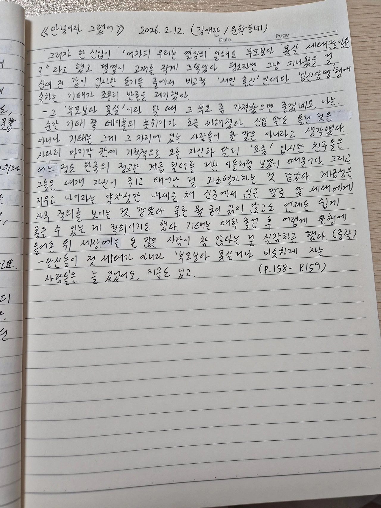 “당신들이 첫 세대가 아니라 ‘부모보다 못살거나 비슷하게 사는 사람들’은 늘 있었어요. 지금도 있고.”(p.158-159)