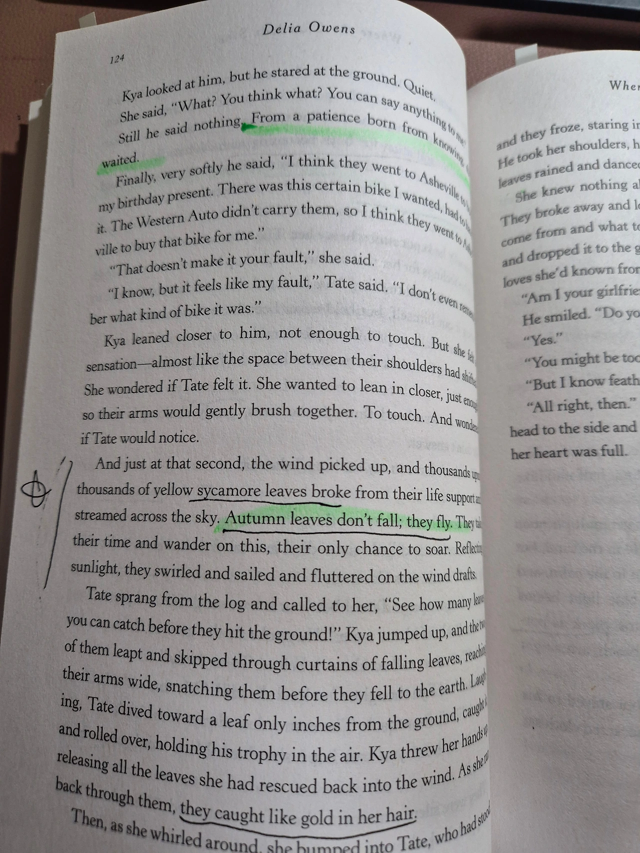 하지만 오늘 읽은 부분에서 가장 인상적인 문장은 따로 있었다. 카야와 테이트가 함께 가을 풍경을 바라보는 장면에서 이런 문장이 등장한다.