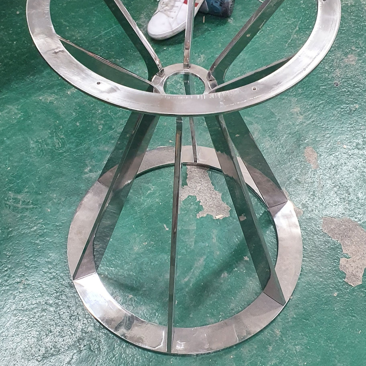 이 테이블의 경우 금속의 구조 자체가 특징적으로 보이는 디자인이었는데, 대리석 상판에 진동이 잡히지 않아서 테스트를 여러 차례 진행해야 했다. 베이스 형태의 잘록한 부분에서 상부로 올라가면서 잡아주는 힘이 상판의 무게에 비해 부족하여 떨림이 발생한 것으로 판단되었다. 금속 원형띠 구조를 추가 용접하여 떨림을 잡을 수 있었다. 테이블은 더 이상 떨지 않는다.