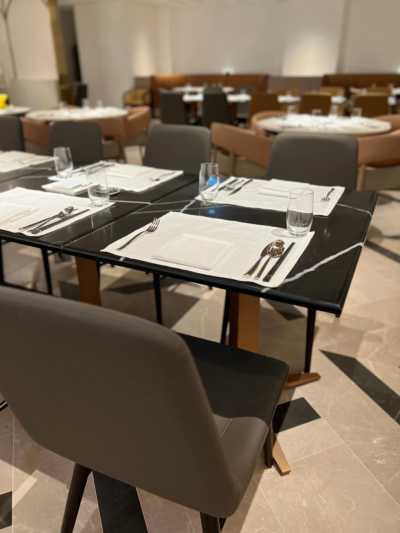 그럼에도 어느 정도의 유연함은 필요하다. 4인 대신 2인 테이블은 2개 만들어 붙였다 떼었다 하며 좌석수를 조정하거나, 6인 테이블을 4인과 2인의 조합으로 한다던지 정도의 유연함은 업장 운영을 용이하게 해 준다. 그런데 대리석과 금속류를 적용하는 디자인이 많은 호텔 테이블의 무게는 상당해지기 일쑤이다. 2인 테이블로 변경해 달라는 요청 다음에 꼭 덧붙여지는 요구사항이 있다.