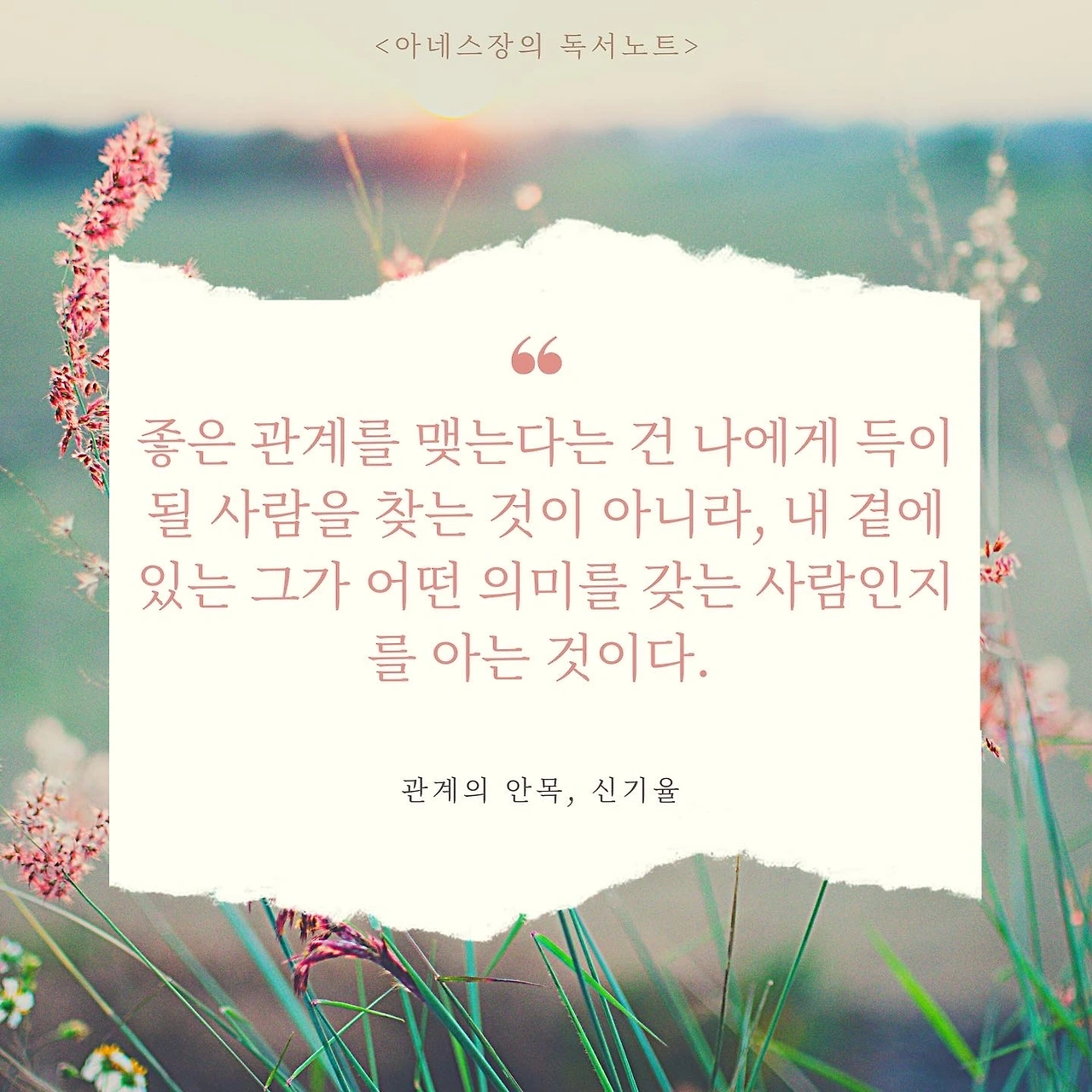 신기율 작가의 관계의 안목에서는 말한다. " 좋은 관계를 맺는다는 건 나이게 득이 될 사람을 찾는 것이 아니라, 내 곁에 있는 그가 어떤 의미를 갖는 사람인지를 아는 것이다"라고...