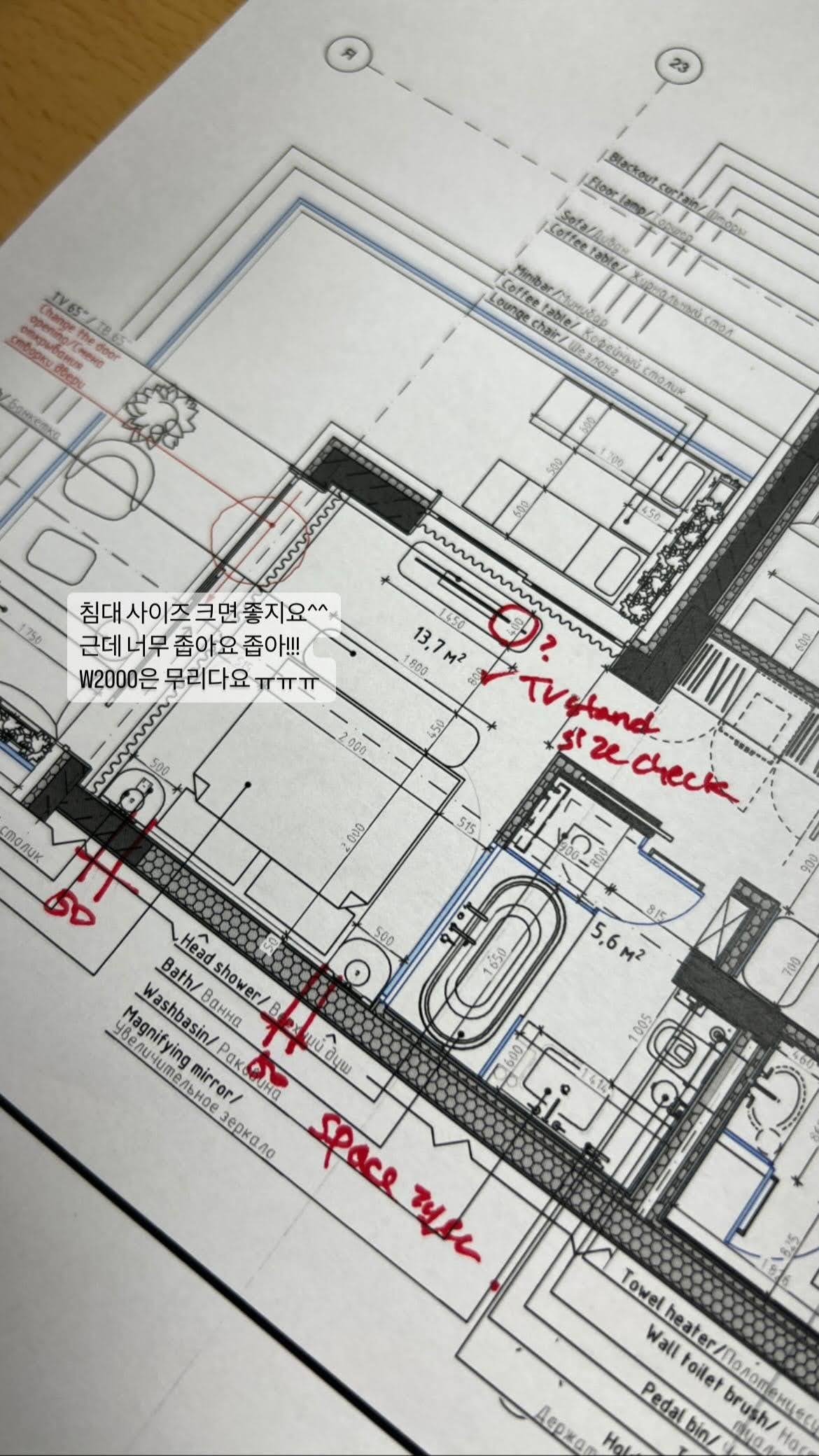 운영안이 확정되었다면, 용도에 맞는 가구 아이템을 동선에 맞게 배치하는 일이 설계의 시작이 된다. 이때 중요한 것은 정확한 사이즈의 가구를 적용하는 것이다. 동선을 고려하지 않고 무조건 큰 침대를 적용한다던지... 공간이 협소해서 테이블을 작게 적용한다던지 하는 경우가 많은데, 가구 배치도를 보면서 공간감을 상상하면서 세부적으로 검토하는 것이 다음 단계로 넘어가기전에 체크되어야 한다.