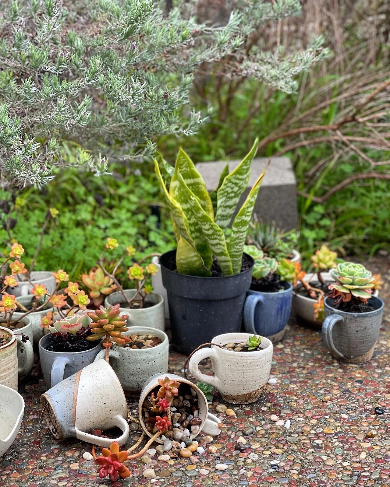 안 쓰는 컵들에 다육이를 심어 마당 한편에 두었는데 밤에 고양이가 어떨 때는 너구리가 때로는 파썸이 지나다니면서 컵들을 쓰러뜨려요.