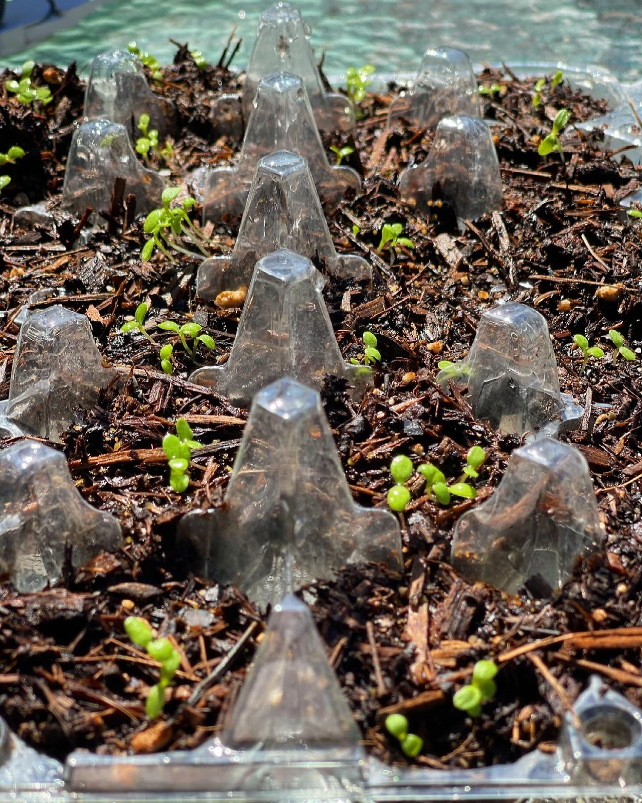 잘 자라면 마당 한쪽에 옮겨 심어 하얀 데이지 밭을 만들어 봐야지 하는 마음을 불태워 씨앗을 심어뒀는데 두 주 만에 뽀록 뽀록 새싹이 돋는다.