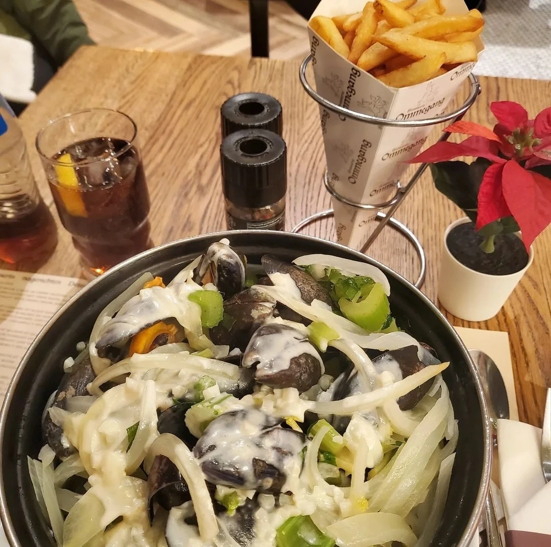 둘째 날 아침이 밝아 호스텔 친구들과 인사를 나누고 체크아웃을 했다. 두 번째 숙소는 혼자 쓰는 방이었지만 시내와 좀 떨어져 있었기 때문에 낮에는 계속 놀다가 밤에 들어가겠다는 계획을 세웠다. 왜 벨기에 사람들이 자부심을 가지고 있는지 이해가 가는 감튀. 그리고 전혀 몰랐는데 벨기에의 유명한 음식이었던 홍합 찜. 혼자 근사한 레스토랑에 가서 4만 원어치 양동이에 나오는 크림 홍합 찜을 시켰는데 나 진짜 한국에서 홍합 안 먹는데 여기는 너무 충격적으로 맛있어서 싹 다 흡입했다. 다 먹어갈 때쯤 내 옆테이블에 커플이 왔는데 반가운 스페인어가 들렸다. 그래서 또 혼자 온 패기로 커플 중 여성분께 말을 걸었다. 나도 스페인에서 왔는데 여기 정말 맛있다고ㅋㅋㅋ 동양인이 스페인어를 해서 그런지 너무 반가워하셨고 고맙다고 하셨다. 그렇게 뿌듯함을 안고 식당을 나왔다.