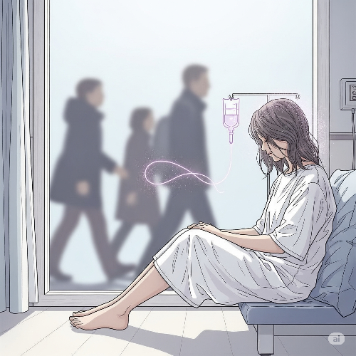 낮에 병원 로비에 앉아 낯선 사람들 사이 검사를 기다리고 있을 때, 몸에 스며드는 익숙한 한기에 몸을 움츠린 채 예전에 입원했을 때의 기억을 떠올렸다.