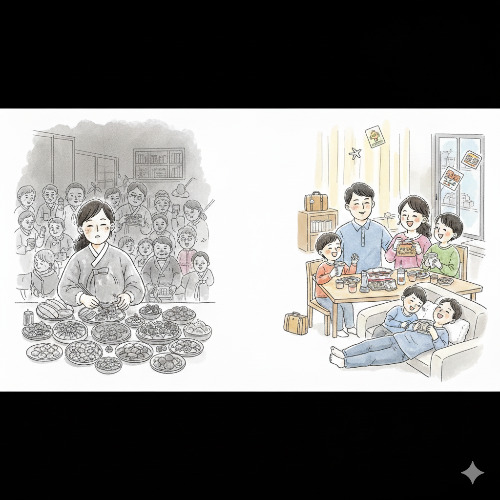 누군가의 희생을 바탕으로 즐거운 “함께”라면, 그것은 더 이상 따뜻한 만남이 아니라 불필요한 부담에 가깝다. 가족이 함께 하는 시간은 분명 소중하지만, 이제는 그 "함께"가 더 이상 부담이나 의무가 아닌, 모두가 행복한 선택의 문제이기를 바라게 된다.