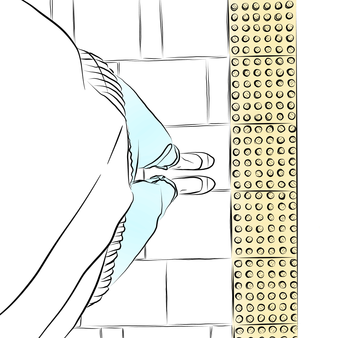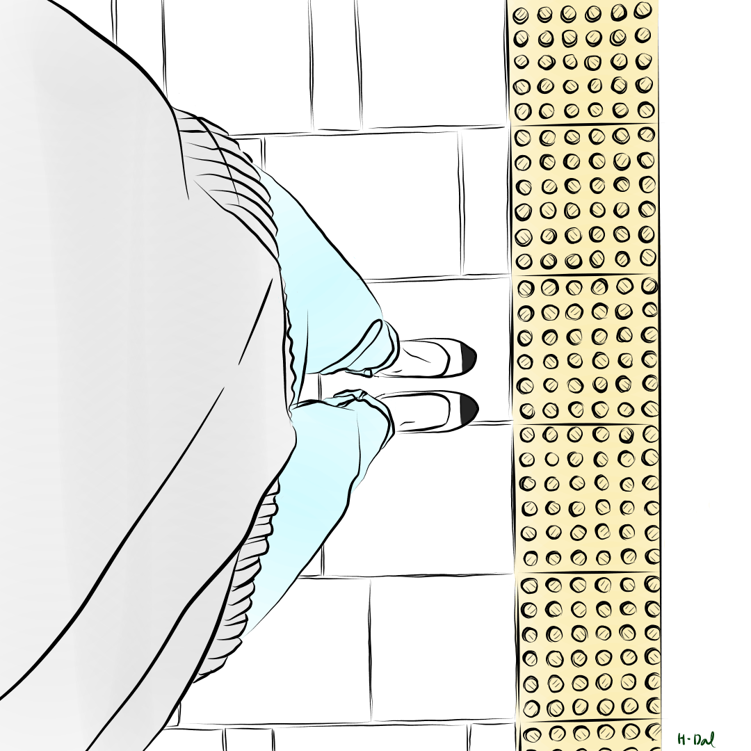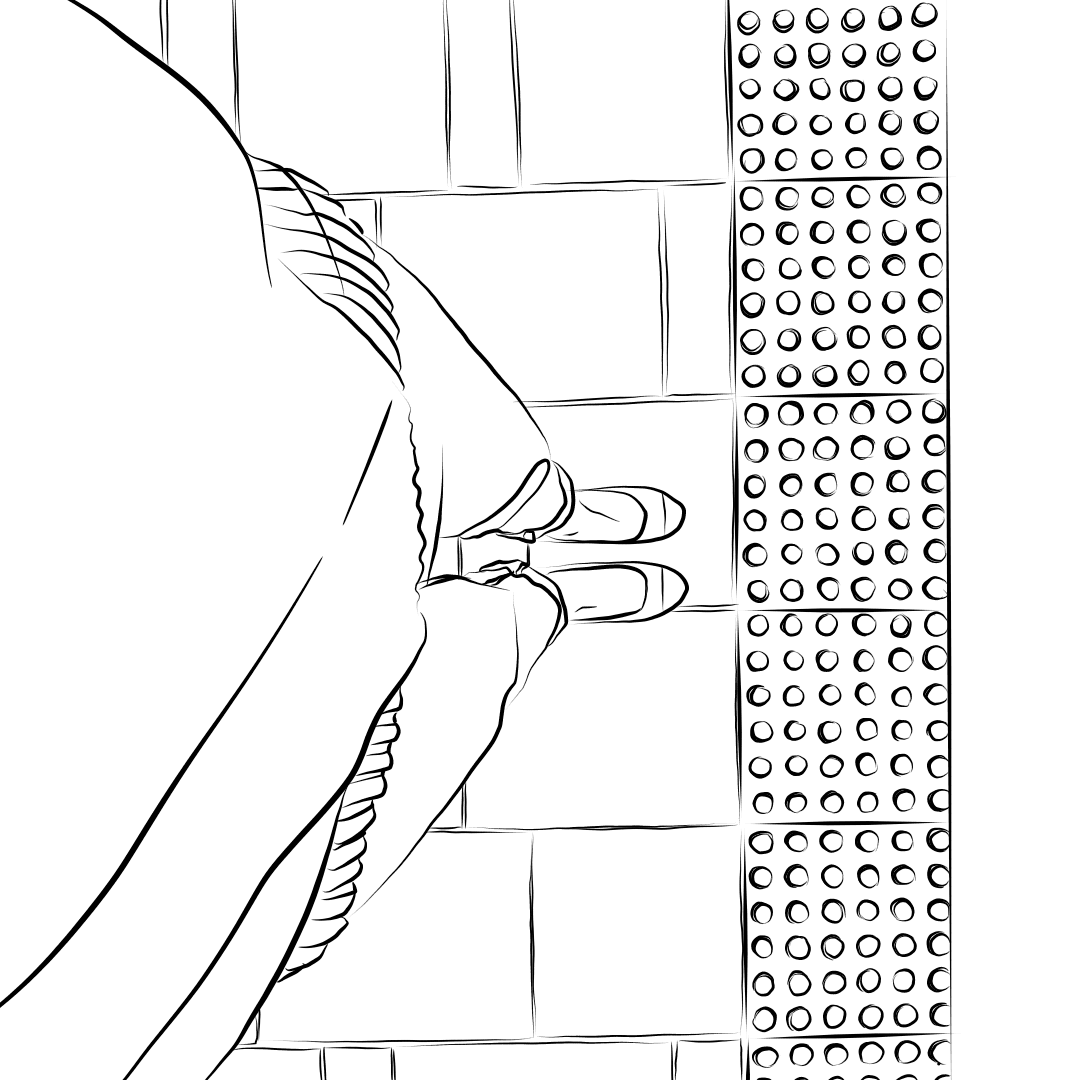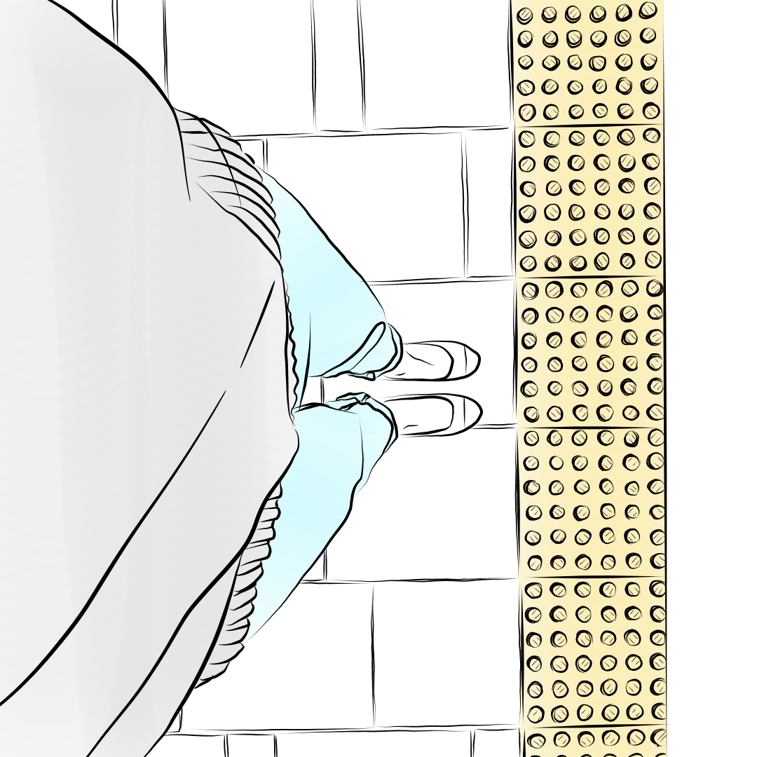 우두커니 멈춰 선 내 발을 바라보며
