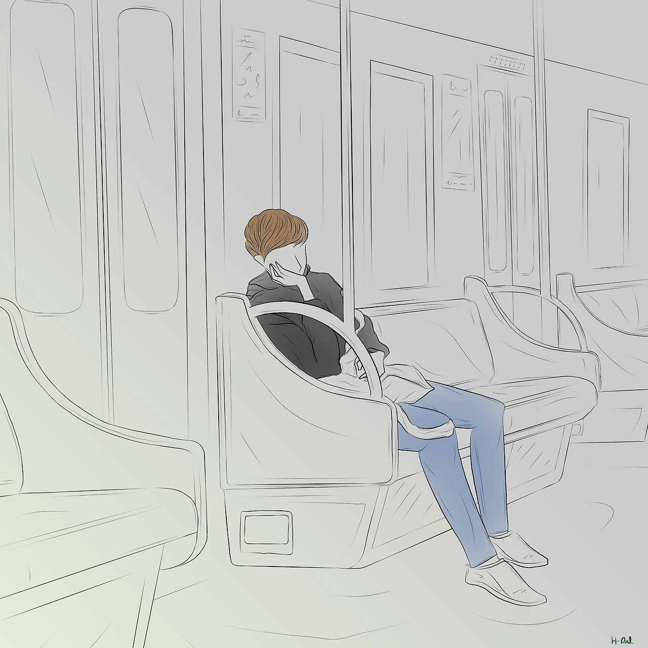 또 다른 남자사람은 08시에 환복을 한다. 언제나 이 즈음이면 손끝의 감각이 둔하다. 눈꺼풀은 무거운데 정신은 말똥말똥하다. 먹은 것도 없는데 몸이 부어있다. 단정한 출근룩을 갖추어 입고 지하철 계단을 오르는 사람들 틈을 비집고 기어코 아래로 아래로 투쟁하듯 나아가 본다. 잠도, 밥도, 옷차림도, 출퇴근도. 역행이 익숙한 이 남자사람의 검정 후드티는 삐딱하게 맨 검정 크로스백과 기가 막히게 잘 어울린다. 역행은 고통스럽지만 결과는 달콤하다. 남자사람에게는 출퇴근 러시도, 야근 스트레스도, 팀워크도, 회식도 없다. 강남에서 서쪽으로. 세차게 역행하는 고요한 지하철에서 곤히 잠에 빠져든다. 자유다. 내 시간이다. 하루의 끝이다.