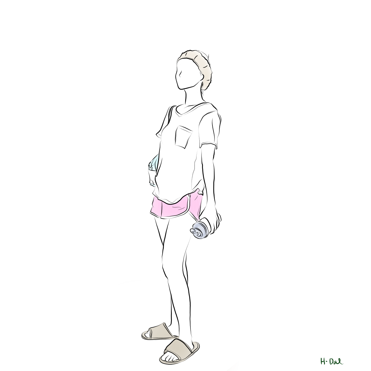 수영 용품을 담아둔 묵직했던 장바구니가 깨끗하게 비고