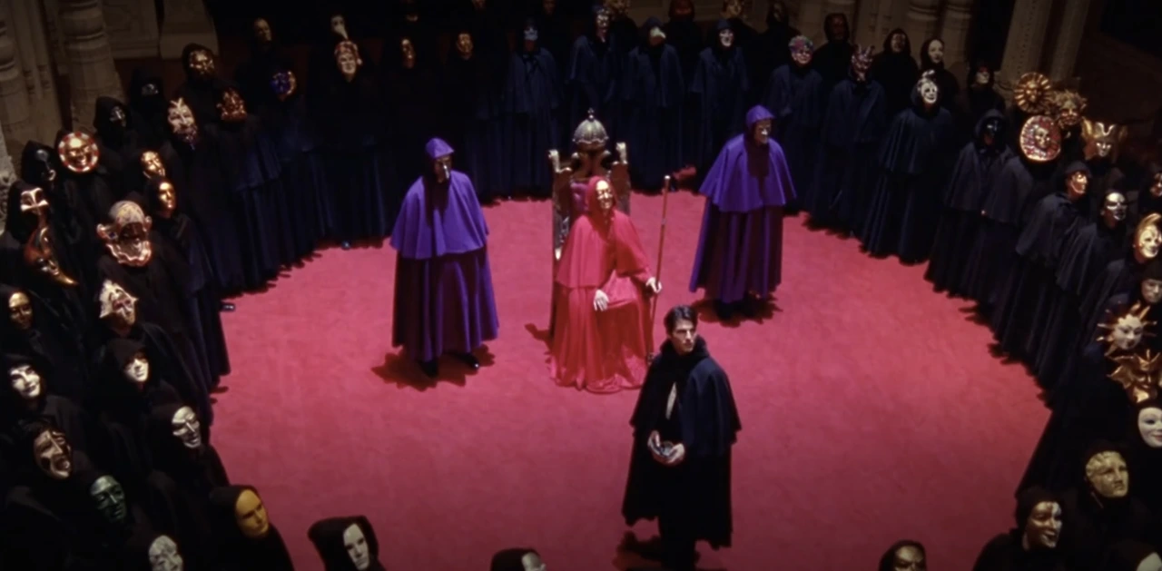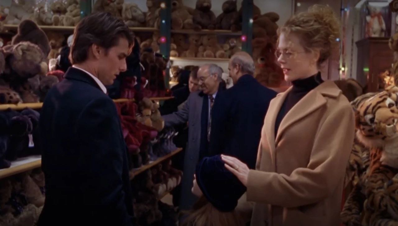 부부가 이 대화를 나누기 전 장면은 지글러라는 빌이 주치의로 있는 재력가의 크리스마스 파티다. 부부는 참석해서 잠시 따로 떨어지는데 빌은 모델 두 명과 앨리스는 헝가리인과의 성적 유혹에 휩싸인다. 물론 아무 일도 없었다. 그렇지만 아무 일도 일어나지 않은 이유에 빌은 결혼을 했기 때문이라 대답하고, 앨리스도 결혼했기 때문이었다. 둘 다 같은 대답처럼 보이지만 결정적인 차이가 있다.