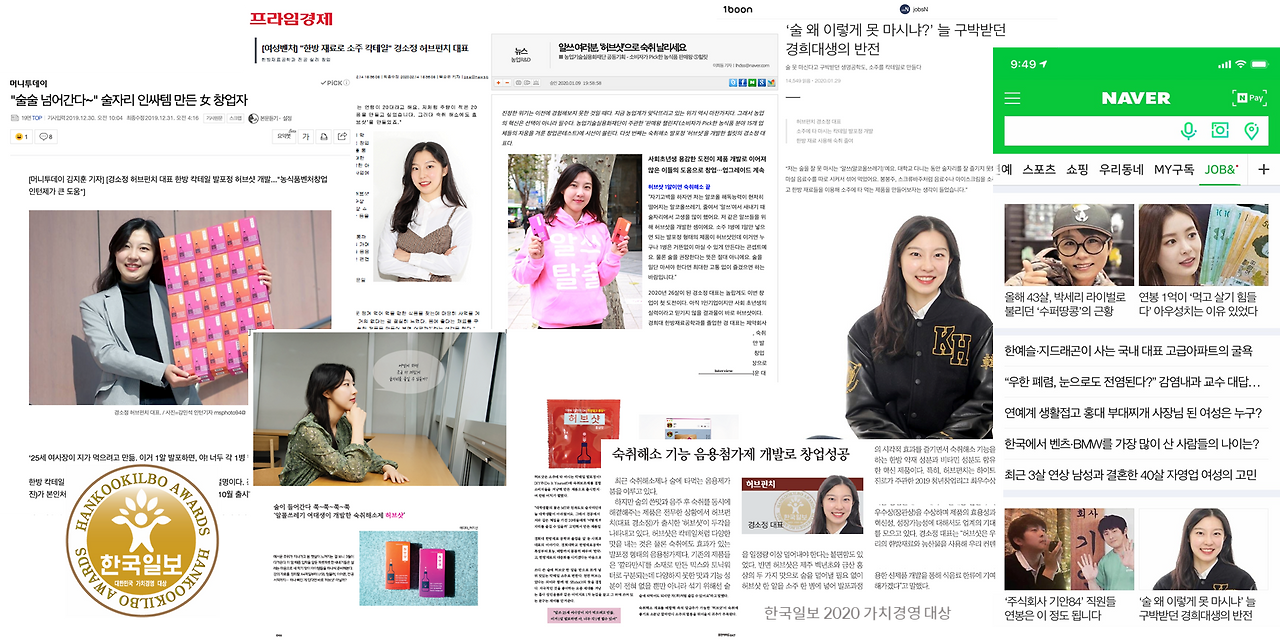 25살, 휴학을 하고 판교에서 창업을 시작했어요. 대학에서 한방재료공학을 전공하면서 한방에 대한 편견을 깨보고 싶은 꿈을 갖게 되었거든요. 그래서 헛개나무와 벌나무를 기반으로 하는 술에 타 먹는 숙취해소 제품을 개발했어요. 운이 좋게도 경진대회에서 상을 받았고, 사회적으로도 조금씩 주목을 받았어요.