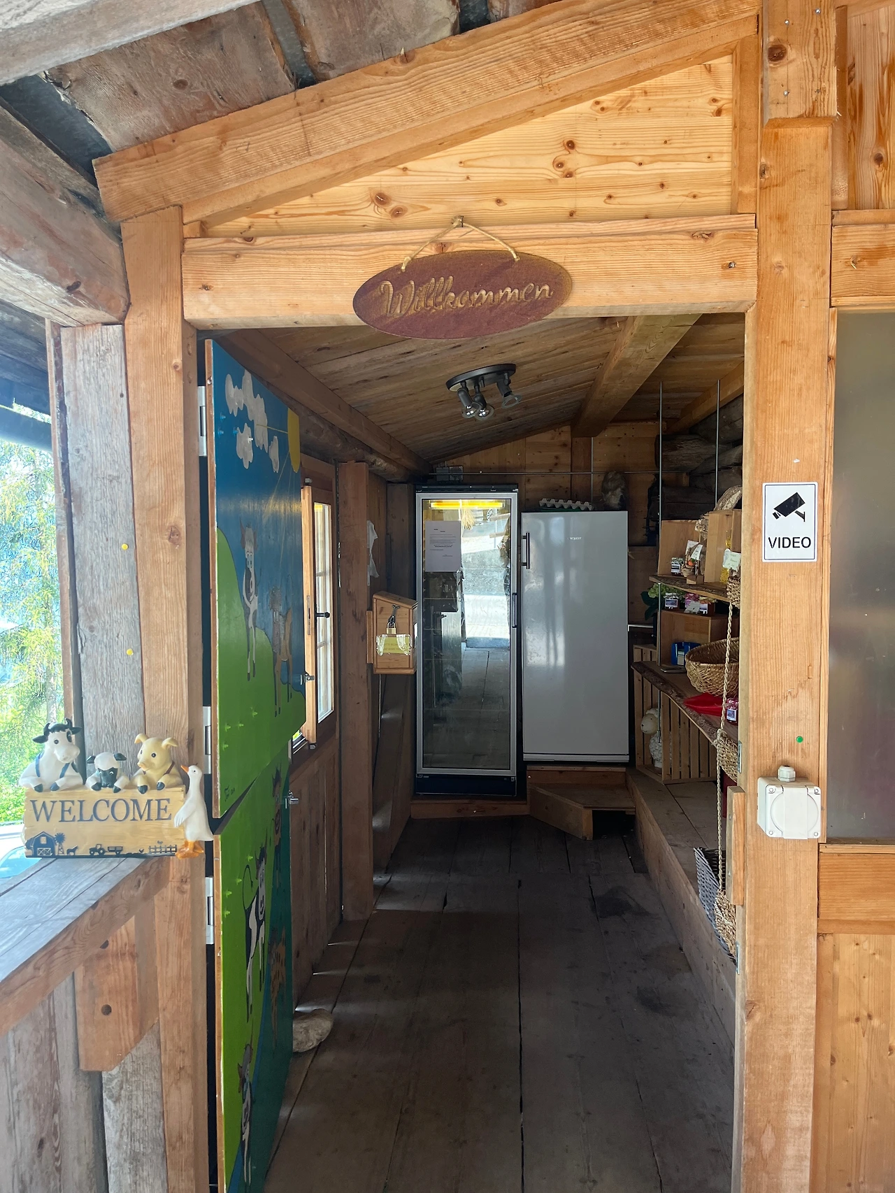 그리고 가끔씩 산속에서 집을 볼 수 있는데요. 거기에는 농장에서 직접 생산한 농식품을 판매하는 농부 마켓이 있는 경우도 있어요. 젖소를 키우는 곳에는 우유나 아이스크림이 있고, 양이나 염소를 치우는 곳에는 치즈가 있어요. 스위스의 많은 농장들은 집 앞에 무인으로 운영하는 농부 마켓을 설치해 둬요. 산속에서 만날 수 있는 농부마켓에는 주로 치즈나 잼류뿐이지만 평지에 위치한 농부 마켓에서는 체리, 사과, 배, 복숭아, 양상추, 감자 등과 같은 다양한 농산물도 판매하고 있어요.