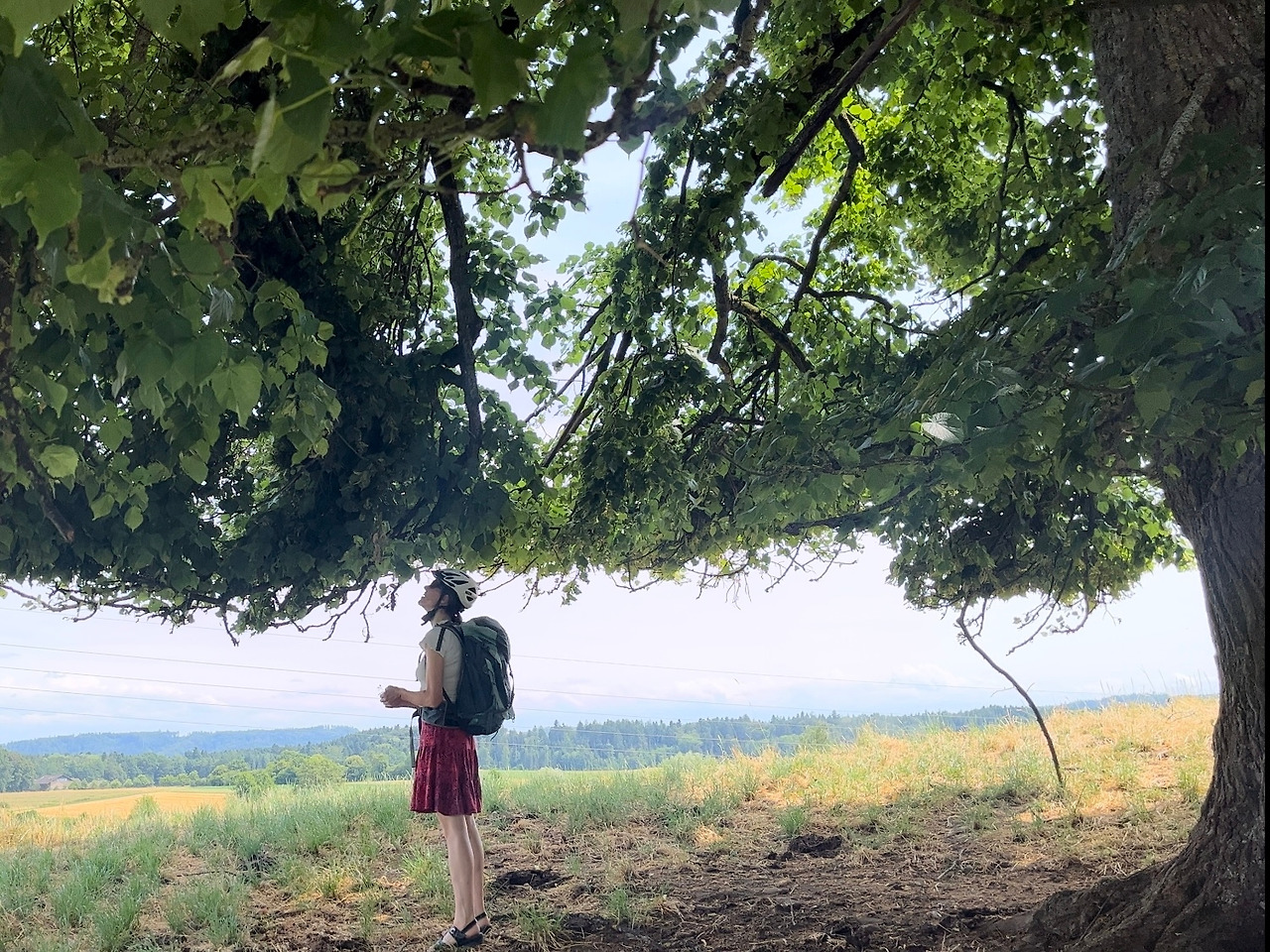 등산을 할 때 꼭 챙겨가는 간식은 초콜릿과 과일이에요. 특히 하이킹은 기본적으로 4시간 이상하기 때문에 챙겨 온 간식이 부족해질 수도 있어요. 그런 경우 자연에서 먹거리를 찾으면 돼요. 스위스에서는 어디를 가든 체리나무가 있거든요. 여름에 길을 가다가 체리나무를 만나면 체리를 마음껏 먹을 수 있어요. 숲 속을 걷다 보면 자연산 블루베리, 라즈베리, 레드커런트 등 다양한 열매를 발견할 수 있고요. 그러면 그 자리에서 열매를 따서 바로 먹으면 돼요. 저는 주로 자연에서 과일만 얻어먹었지만 현지인들은 꽃을 따서 차를 만들거나 허브를 캐서 샐러드로 먹기도 해요. 숲 속에서 자란 풀이나 열매는 모두 유기농이라 건강에 더 좋다고 생각하더라고요.