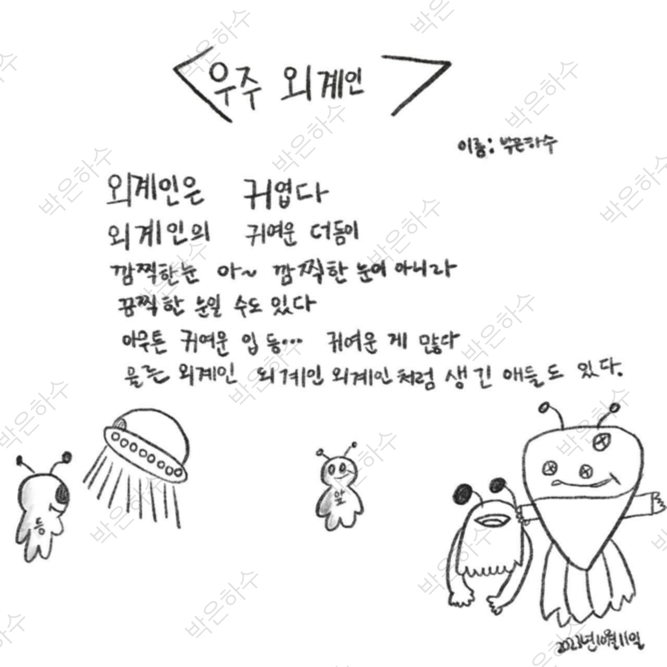 은하수의 상상속 외계인들이 귀엽고 깜찍하구나.