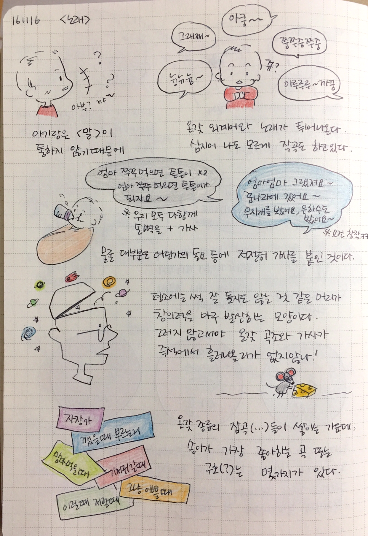 아기 볼 때 내는 온갖 소리와 추임새, 부르는 막노래 추는 막춤 등.. 아기가 엄마를 각성시키나?
