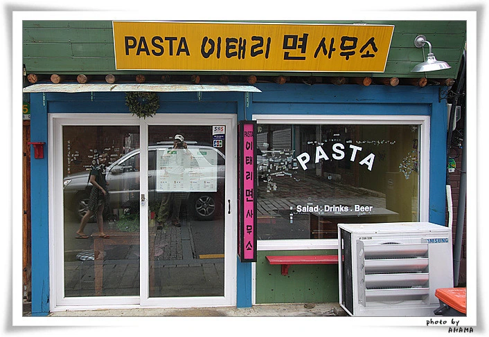 인위적인 촌스러움이 살며시 우스꽝스러운 피자집 쇼윈도우. 면사무소라 일요일은 쉬는갑다....