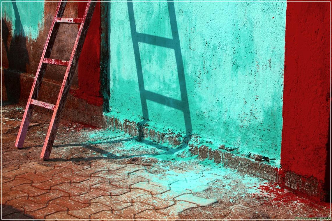 서투른 솜씨때문에 벽에 칠한 색깔만큼 바닥이 흥건하다.