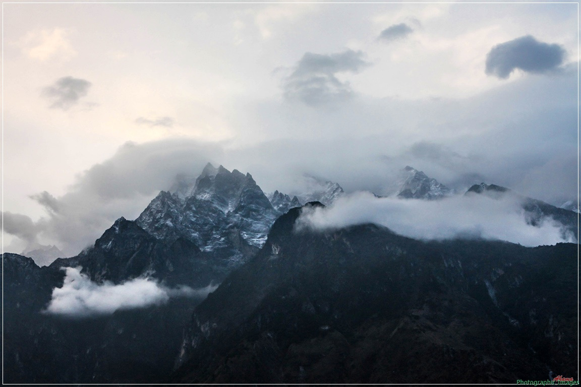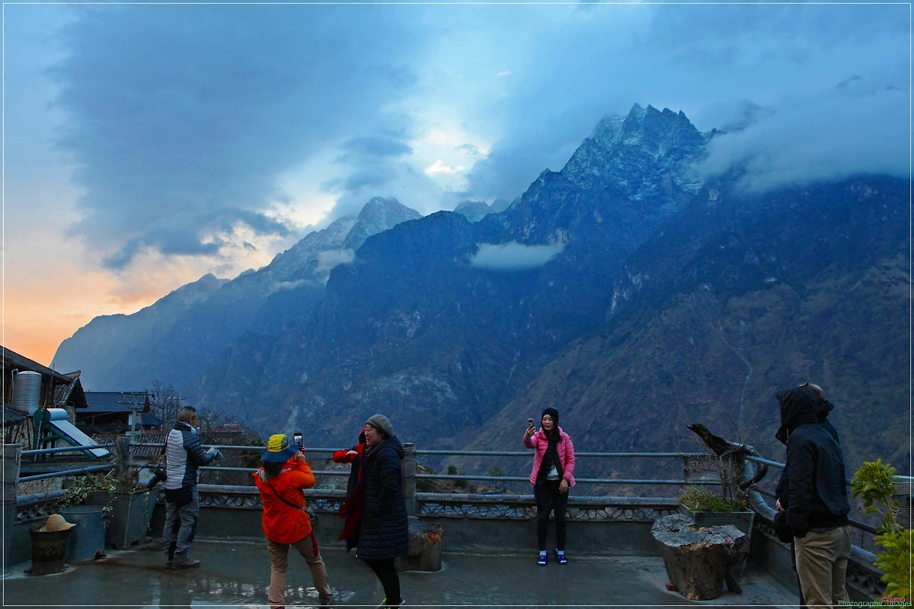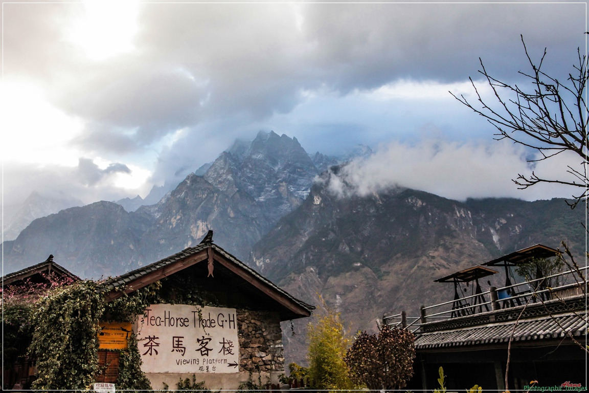 이미 해는 뉘엿뉘엿 5000여 미터의 고산을 넘어 가기 시작하고 건너에 보이는 흔들림 없는 옥룡설산의 자태를 전경으로 보이는 도착한 숙소에서의 저녁 풍경은 ... 이런 사진으로도 설명이 안돼... 약간 흐린듯한 날씨에 조금은 실망스럽지만... 이곳에 머물고 있다는 사실 하나만으로도 이미 행복충만......